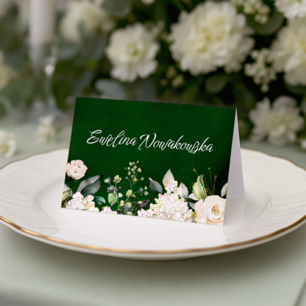 Bardzo elegancko prezentują się winietki, na których imię i nazwisko gości wydrukowane jest pozłacaną czcionką. Nadaje im to wręcz ekskluzywnego charakteru, na czym zyskuje całe nakrycie stołu. Równie zjawiskowo prezentują się ciemne winietki, na których godność Waszego gościa wypisana jest białą czcionką, co razem stanowi przyjemny dla oka kontrast.