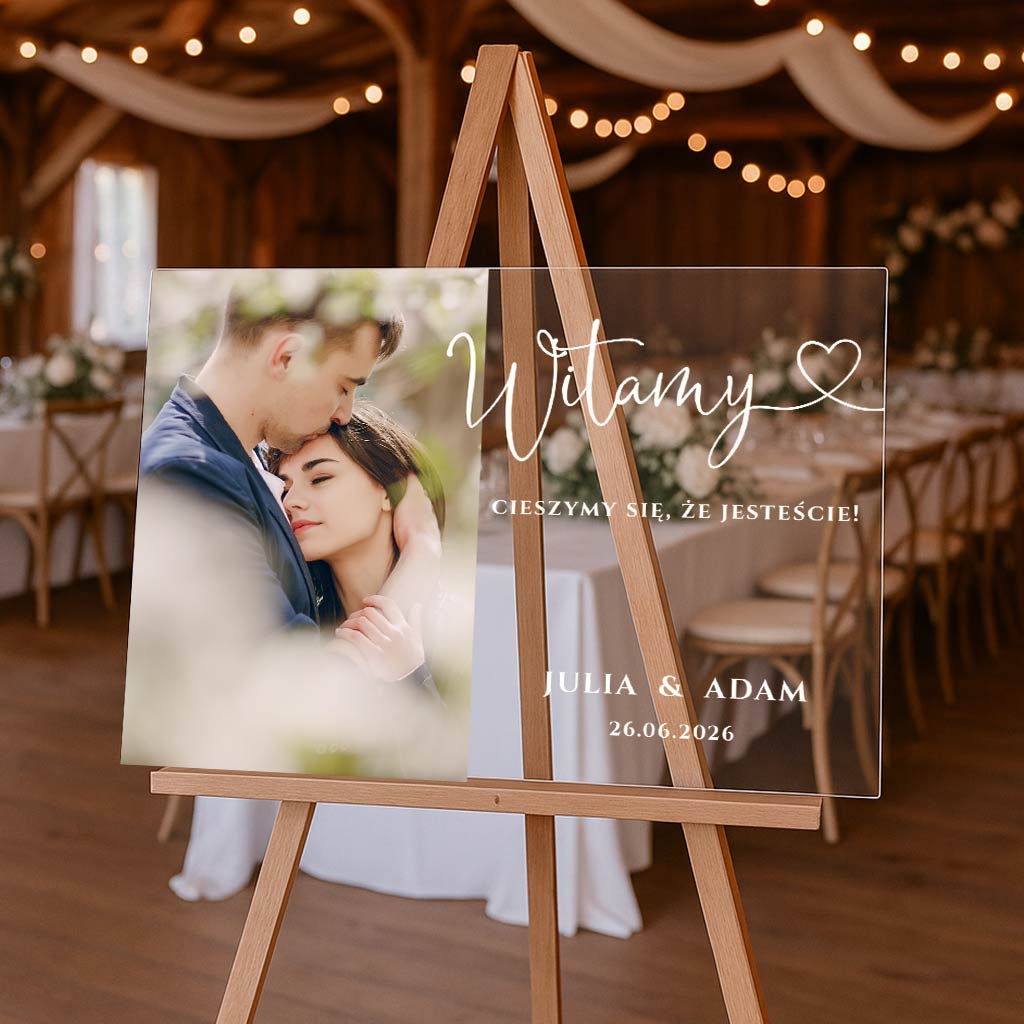 Akrylowa tablica powitalna ze zdjęciem – 70×50 cm – POZIOMO