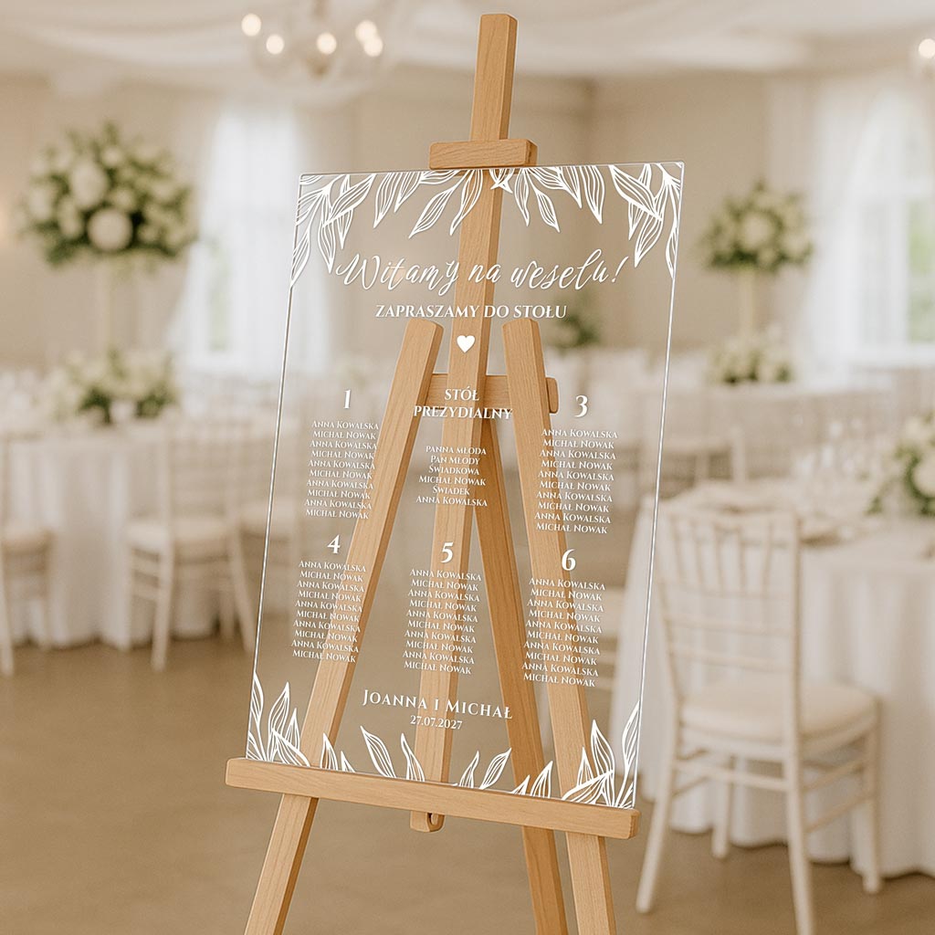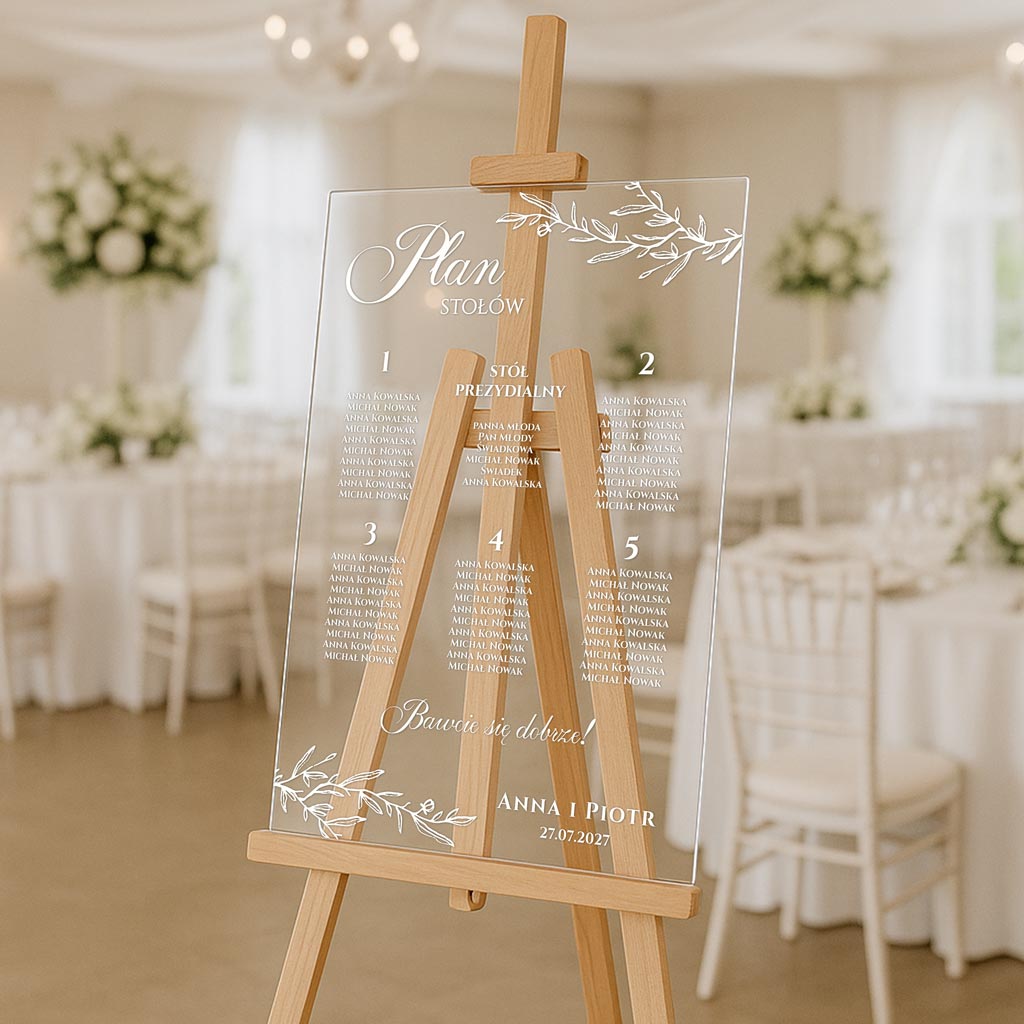 Akrylowa tablica z usadzeniem gości 70×50 cm – Selma