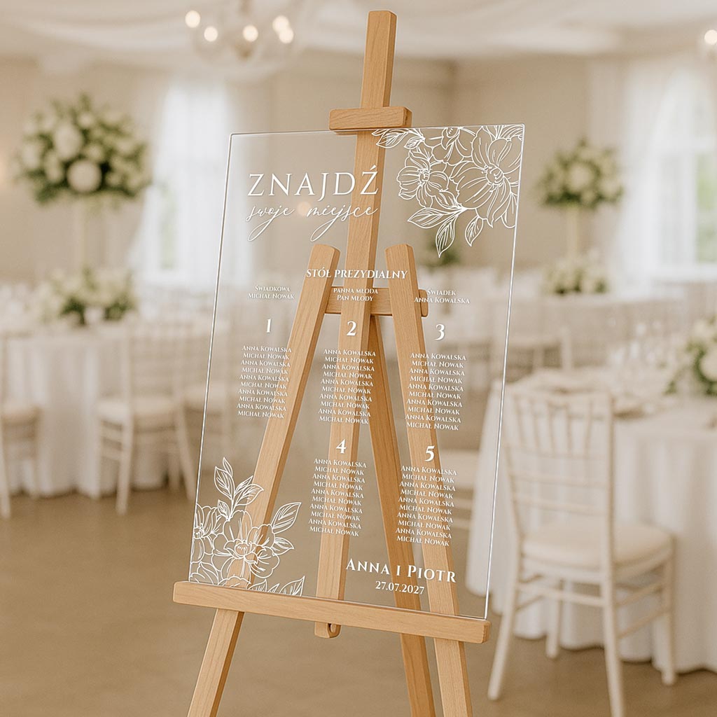 Tablica z usadzeniem gości to nie tylko praktyczne narzędzie. Jest ona ważnym elementem organizacyjnym, który wpływa na atmosferę wesela, pomaga w jego płynnym przebiegu i dodaje całemu wydarzeniu osobistego uroku. Treść na tablicy jest całkowicie dowolna.
