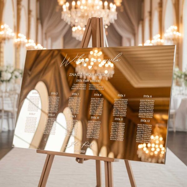 Stylowe zaproszenia ślubne wykonane na lustrzanym akrylu, co nadaje im wyjątkowy charakter.