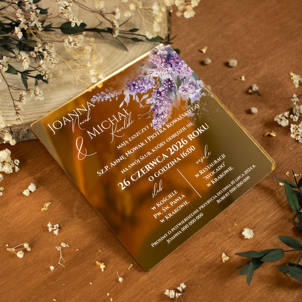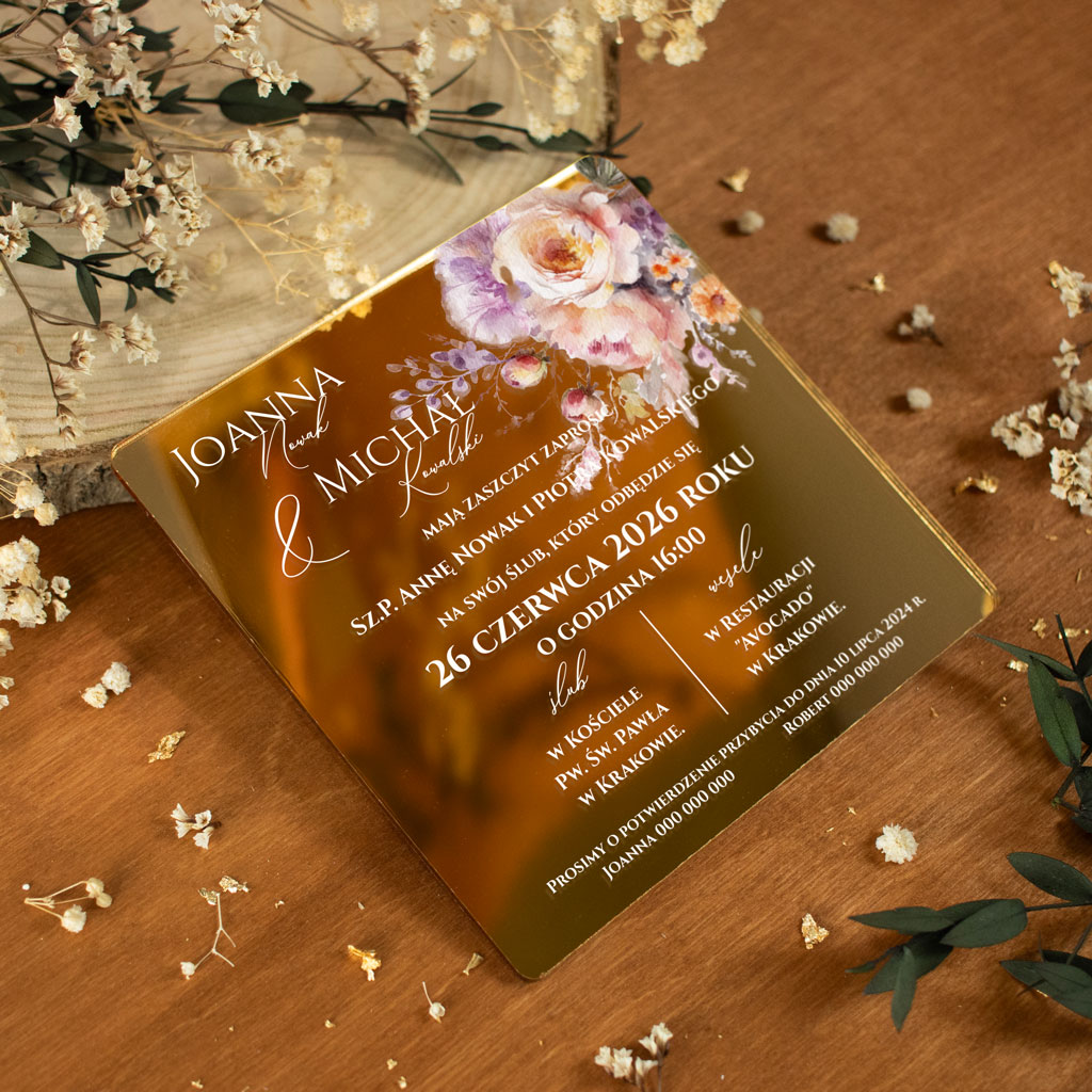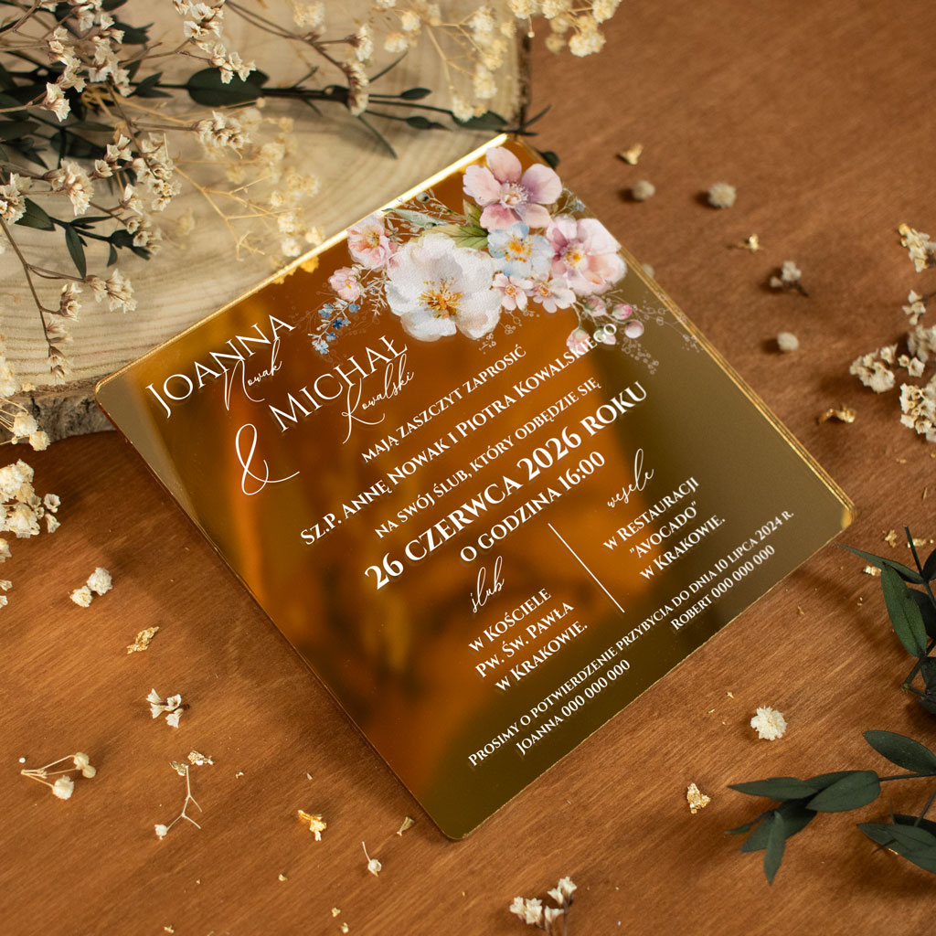 Akrylowe Zaproszenie Ślubne – lustrzane złoto – Wiktoria2