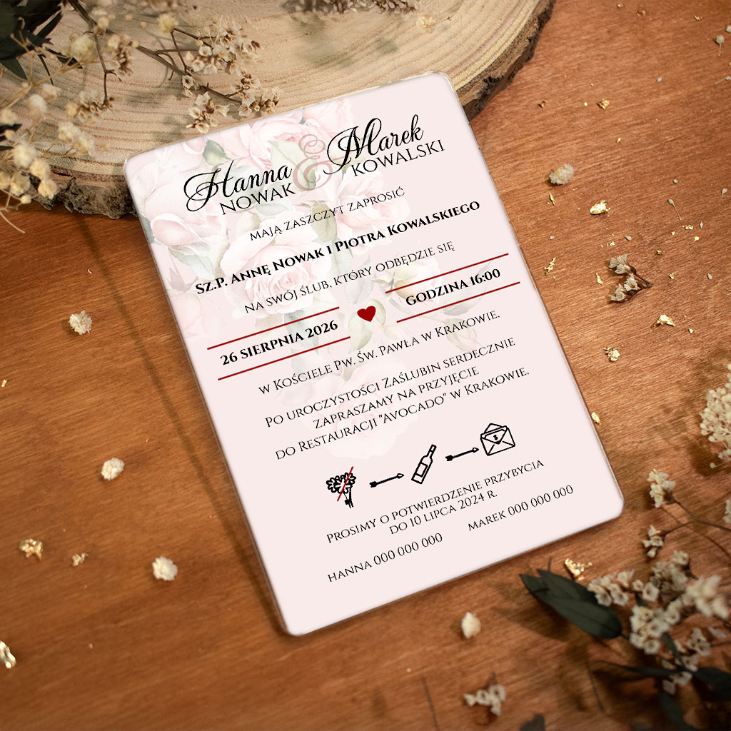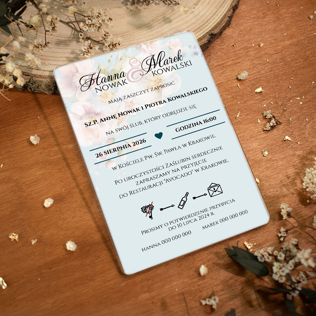 To idealny wybór dla par, które chcą zaprosić swoich gości w elegancki sposób. Treść na zaproszeniach jest całkowicie dowolna, możesz przygotować projekt na dowolną okazję.