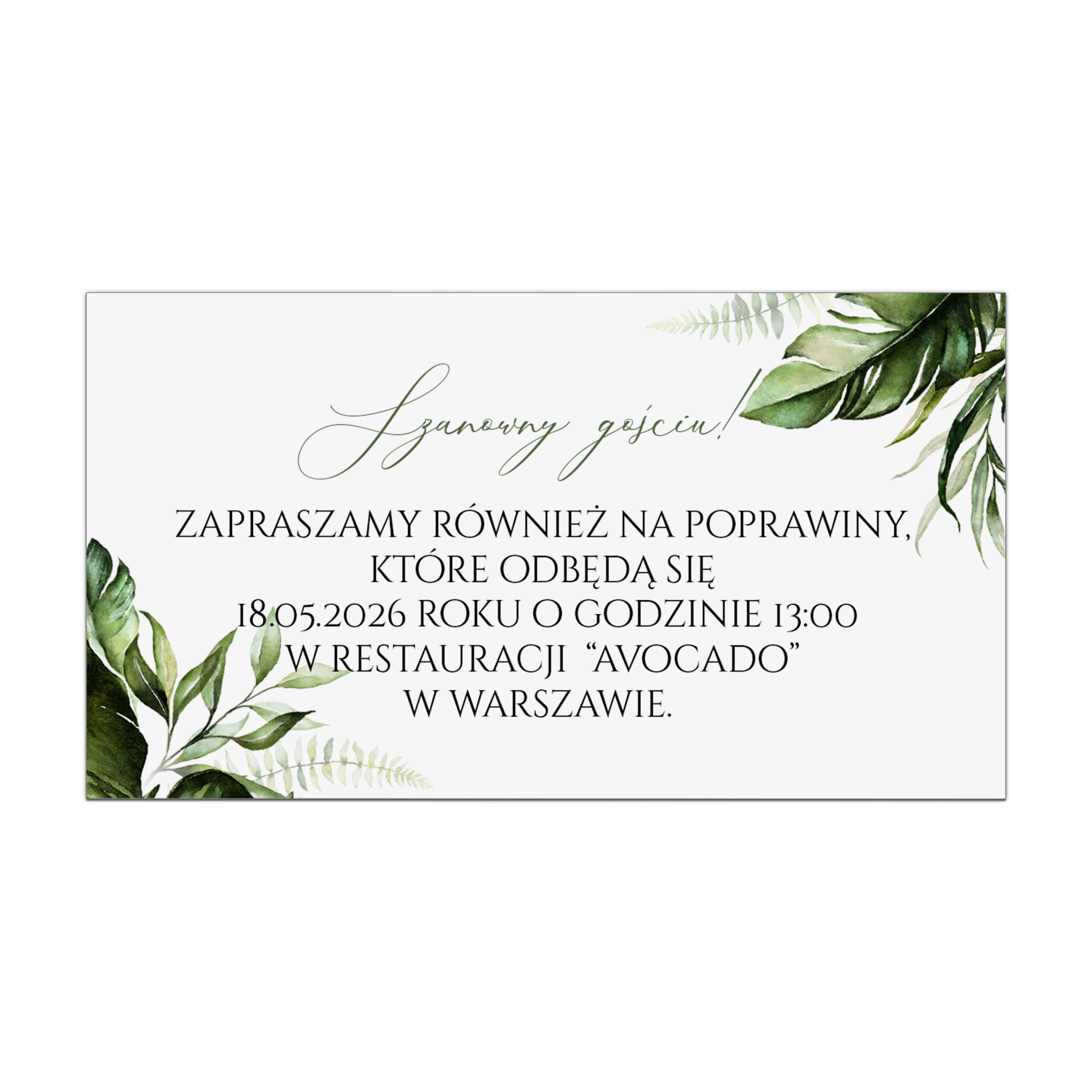 Niezwykle praktyczny dodatek do zaproszeń – ozdobna karteczka z dowolną treścią. Idealne do przekazania gościom wszelkich dodatkowych informacji. W ofercie posiadamy bardzo wiele różnych wzorów. Treść jest całkowicie dowolna.
