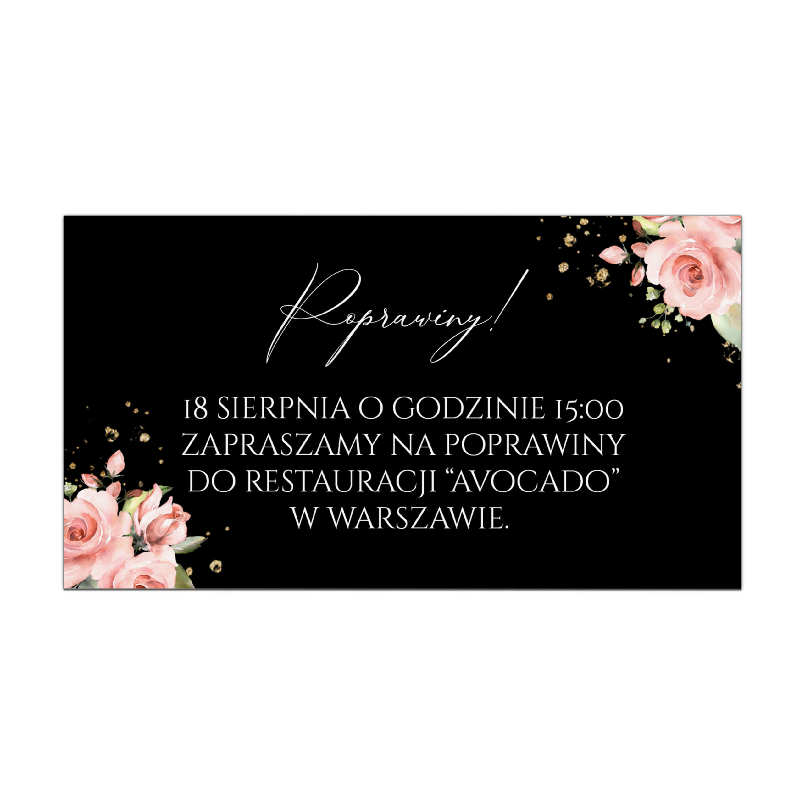 Niezwykle praktyczny dodatek do zaproszeń – ozdobna karteczka z dowolną treścią. Idealne do przekazania gościom wszelkich dodatkowych informacji. W ofercie posiadamy bardzo wiele różnych wzorów. Treść jest całkowicie dowolna.