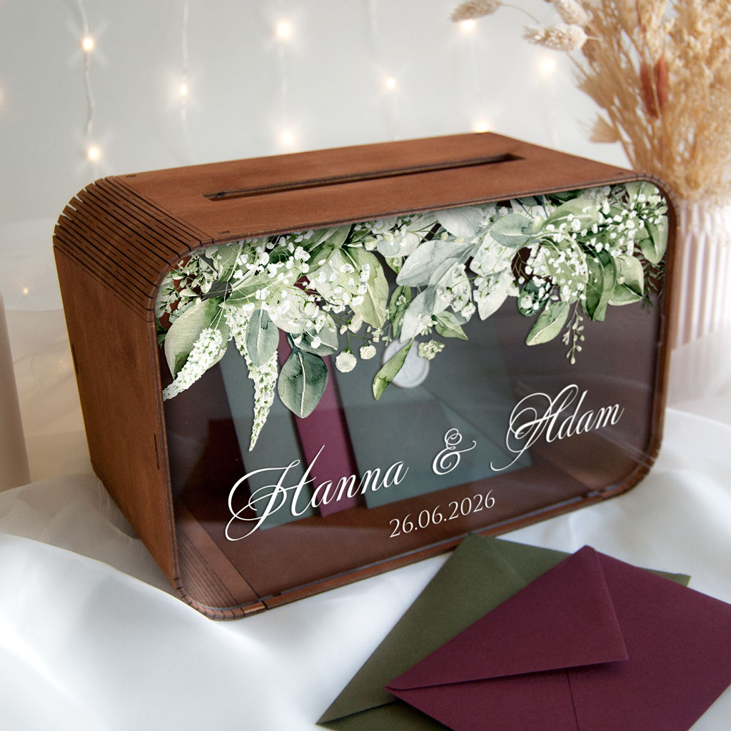 Tradycją jest, że podczas składania życzeń Parze Młodej wręcza się wyjątkowe kartki z życzeniami oraz prezenty, które najczęściej mieszczą się do koperty. Jeżeli w tym wyjątkowym dniu chcesz aby przechowywanie tylu kopert było wygodne to odpowiedź jest tylko jedna: zaopatrz się w naszą skrzynkę na koperty. Pudełko na koperty to bardzo praktyczny i estetyczny dodatek ślubny, który także po ślubie będzie mieć zastosowanie, np. jako pudełko do przechowywania pamiątek ślubnych.