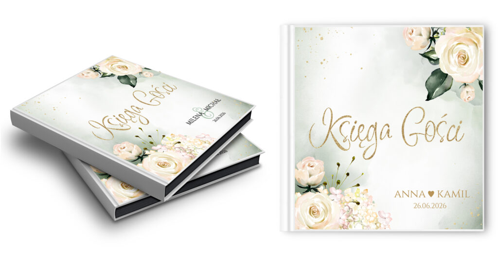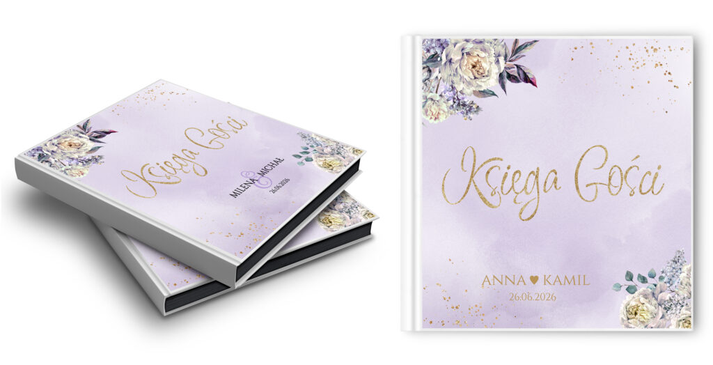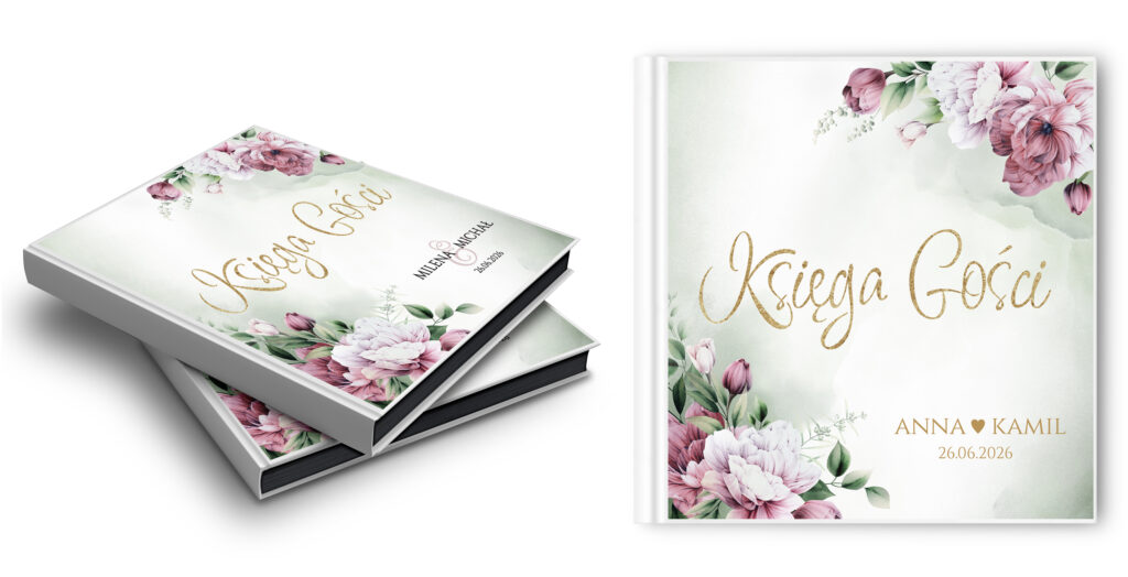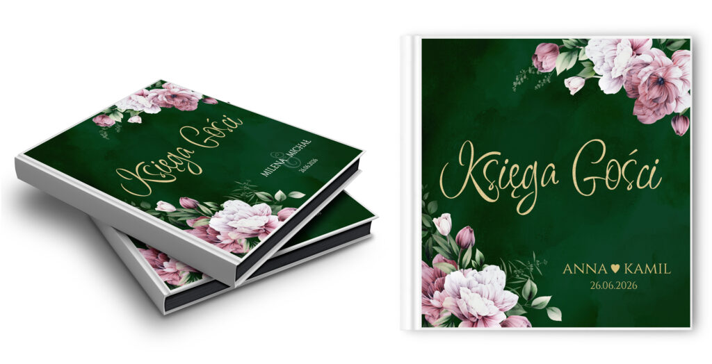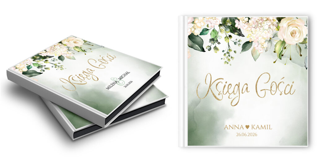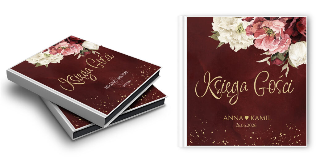 Księga gości weselnych w sztywnej oprawie z personalizowaną okładką to idealny sposób na zachowanie wspomnień z ważnego dnia.