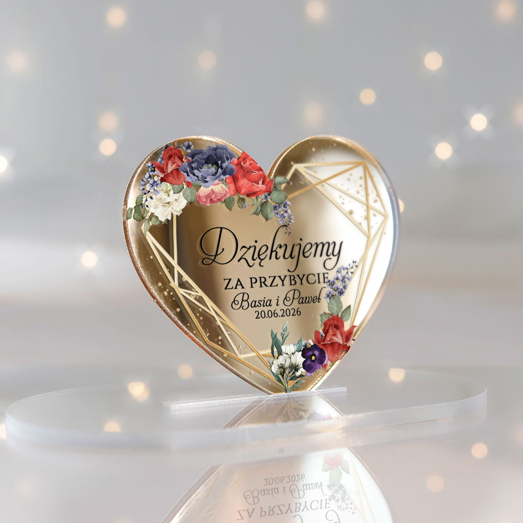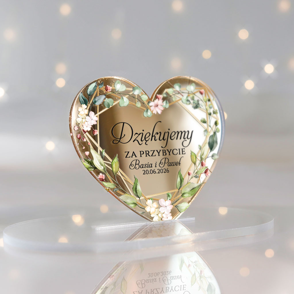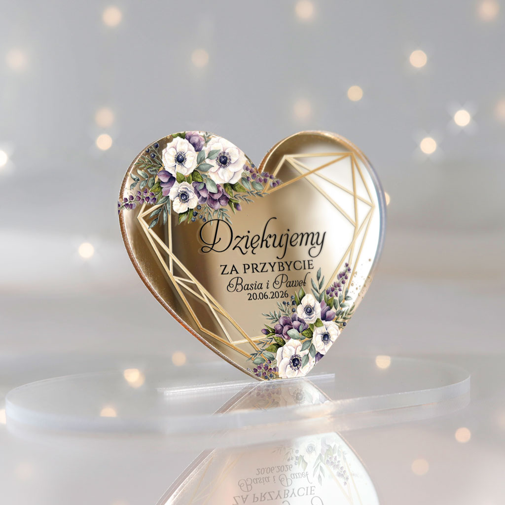 Wyjątkowe magnesy ślubne z podziękowaniem dla gości, które będą niezapomnianą pamiątką z Waszego wyjątkowego dnia. Magnesy z nadrukiem UV z pięknym motywem serca, idealnie wpisującym się w klimat każdej uroczystości. Subtelne i eleganckie – doskonałe dopełnienie ślubnych podziękowań!