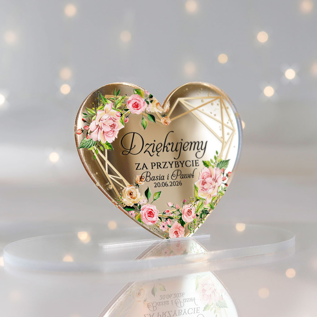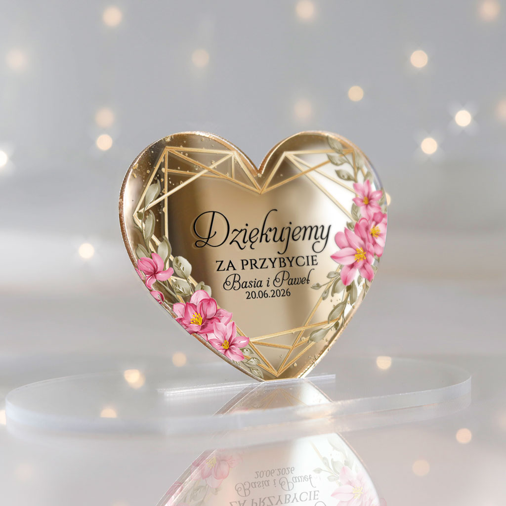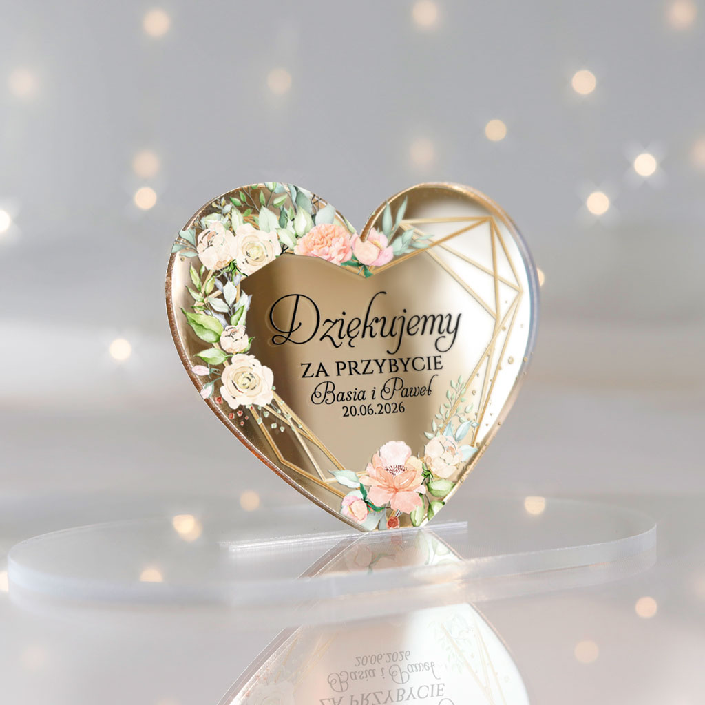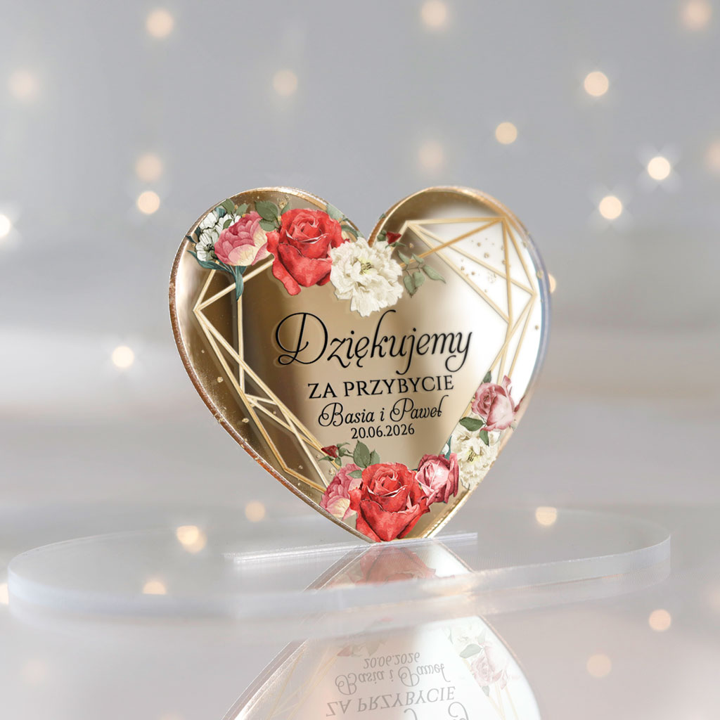 Wyjątkowe magnesy ślubne z podziękowaniem dla gości, które będą niezapomnianą pamiątką z Waszego wyjątkowego dnia. Magnesy z nadrukiem UV z pięknym motywem serca, idealnie wpisującym się w klimat każdej uroczystości. Subtelne i eleganckie – doskonałe dopełnienie ślubnych podziękowań!