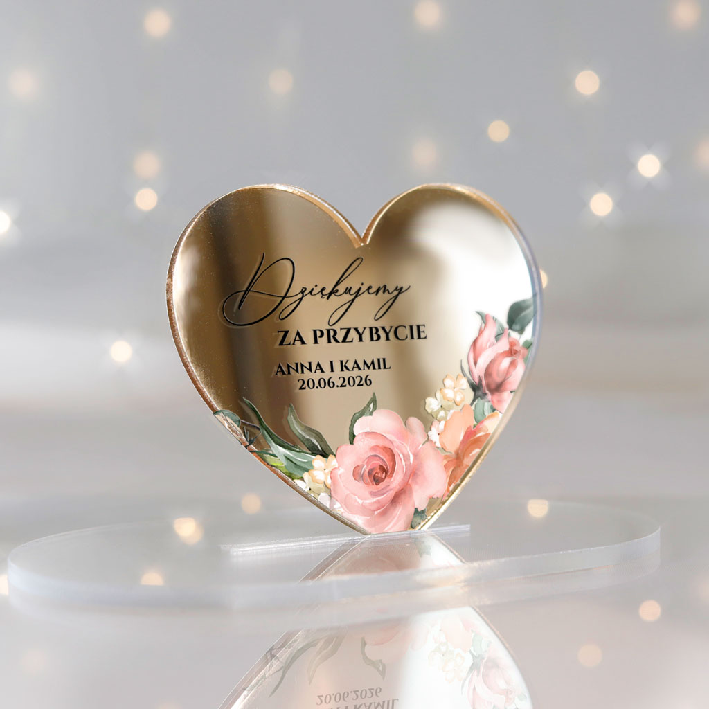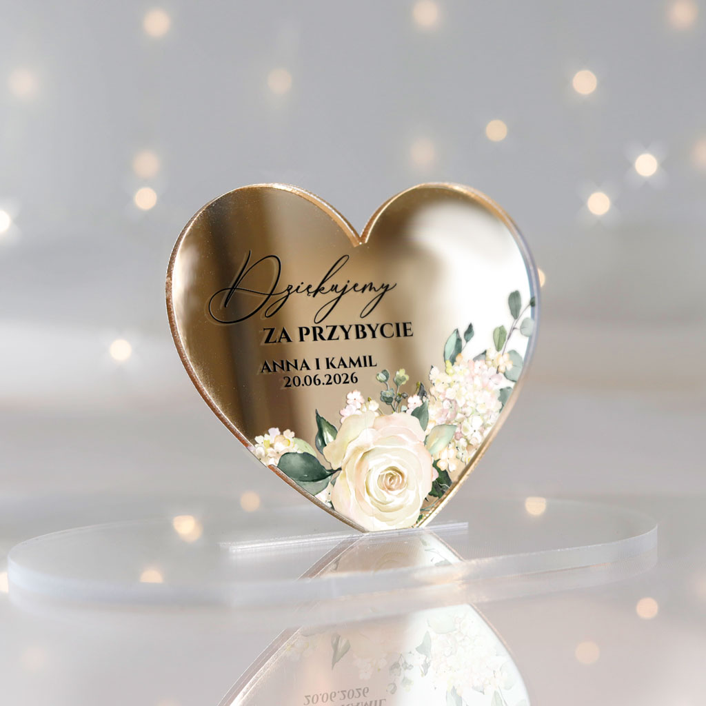 Magnesy Serca lustrzane złoto – podziękowania dla gości – Irelia