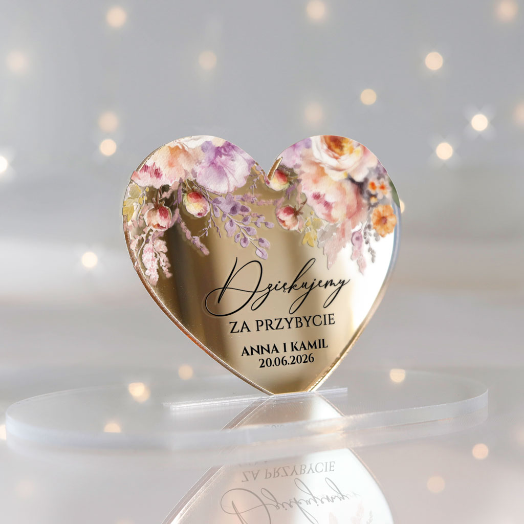 Magnesy realizowane na pleksi złote lustro 3mm | Nadruk UV | Wymiary: 7×6 cm | naklejki magnetyczne do samodzielnego podklejenia serc | Dowolna treść | Zamówienia realizujemy od ilości minimalnej 30szt