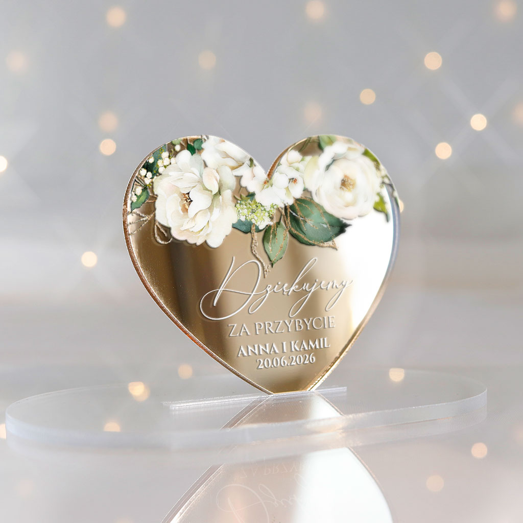 Magnesy Serca lustrzane złoto – podziękowania dla gości – Miriam i Julianna