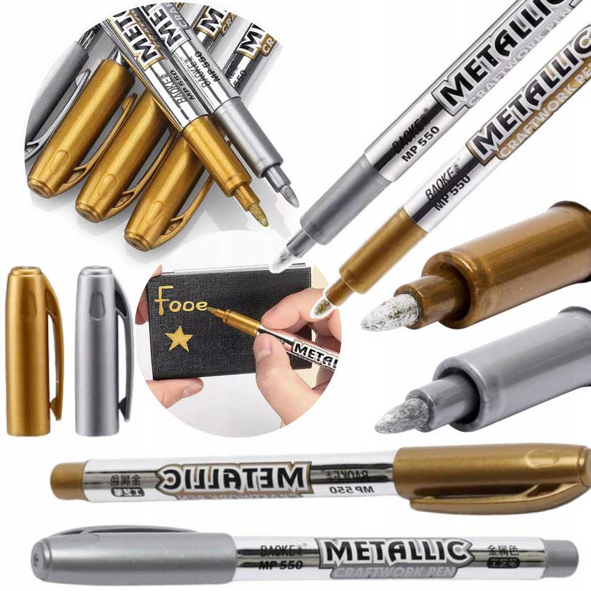 Pisaki Mazaki Markery Metaliczne Księga Gości Srebrny Złoty 2szt