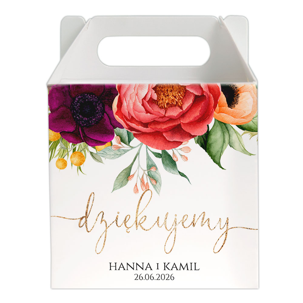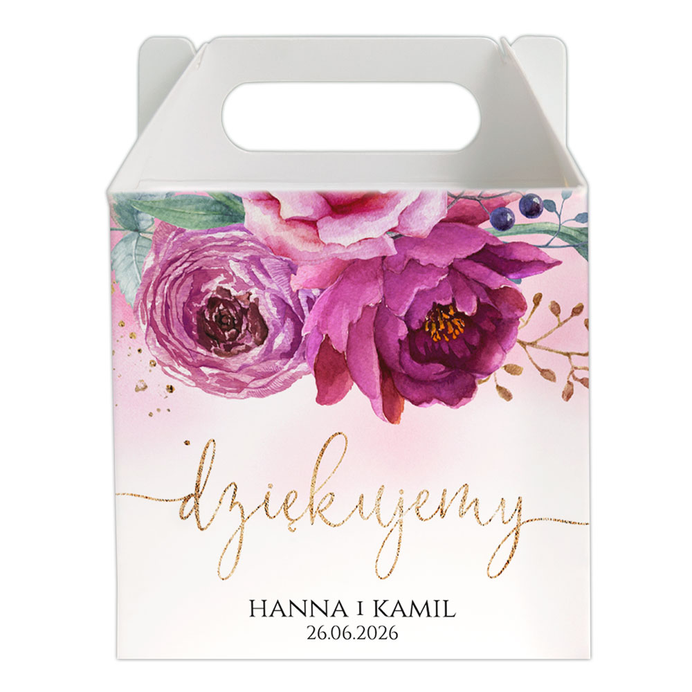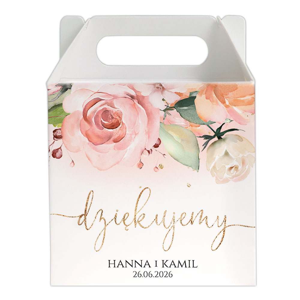 Wyjątkowe pudełeczka z personalizowanym podziękowaniem dla gości (treść jest dowolna). Idealnie sprawdzą się do przechowania cukierków lub krówek ślubnych.