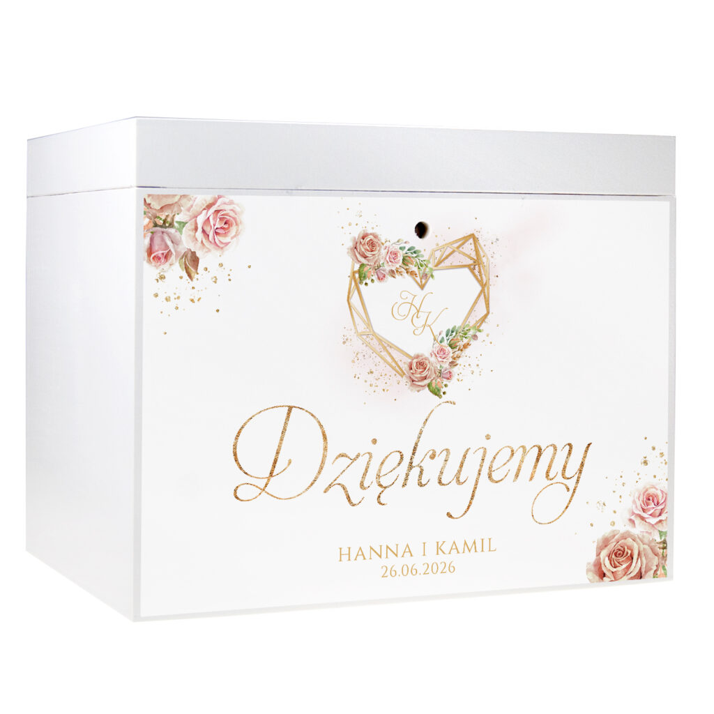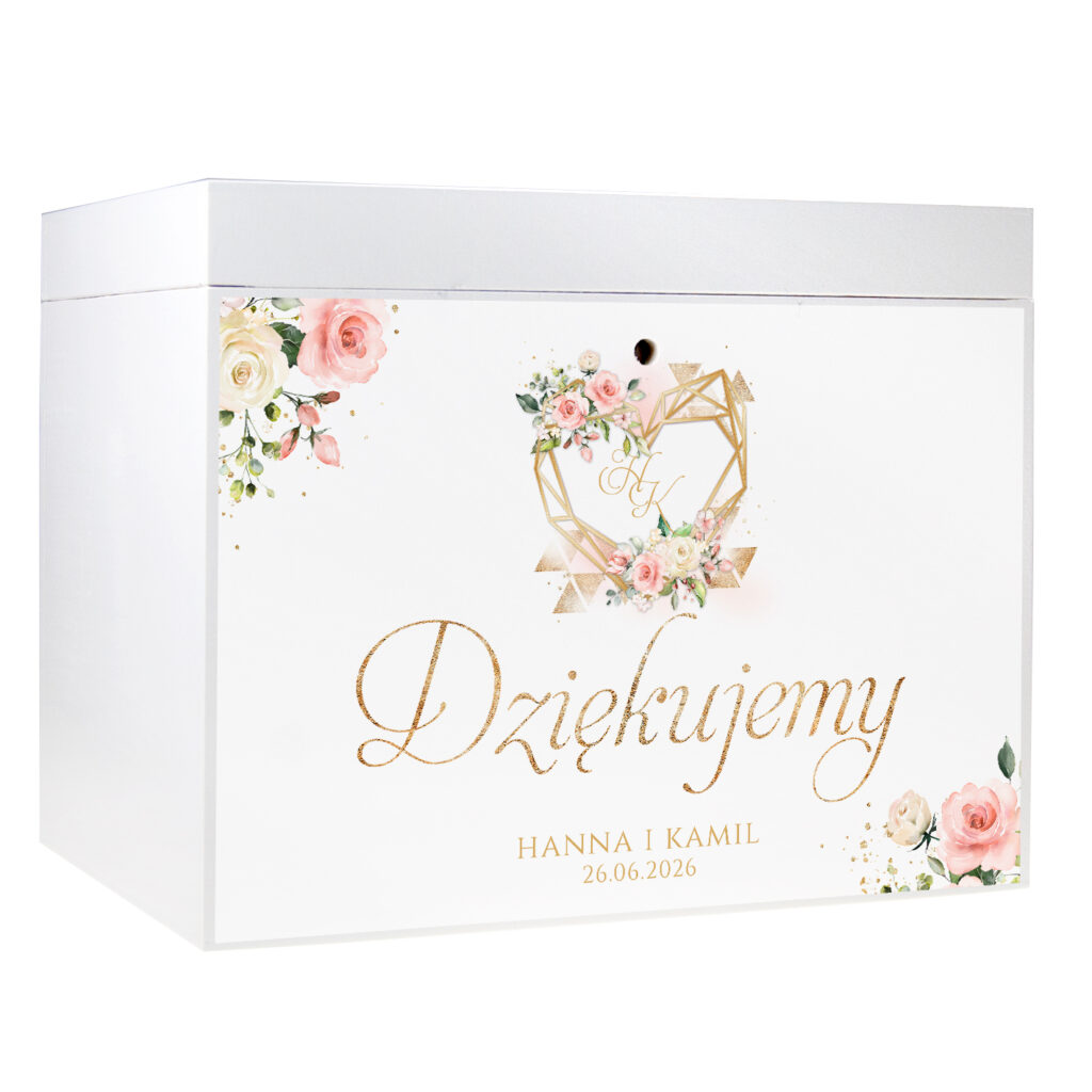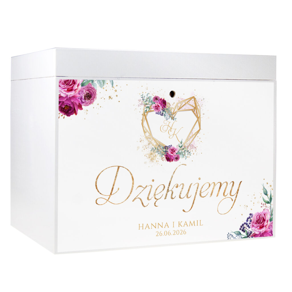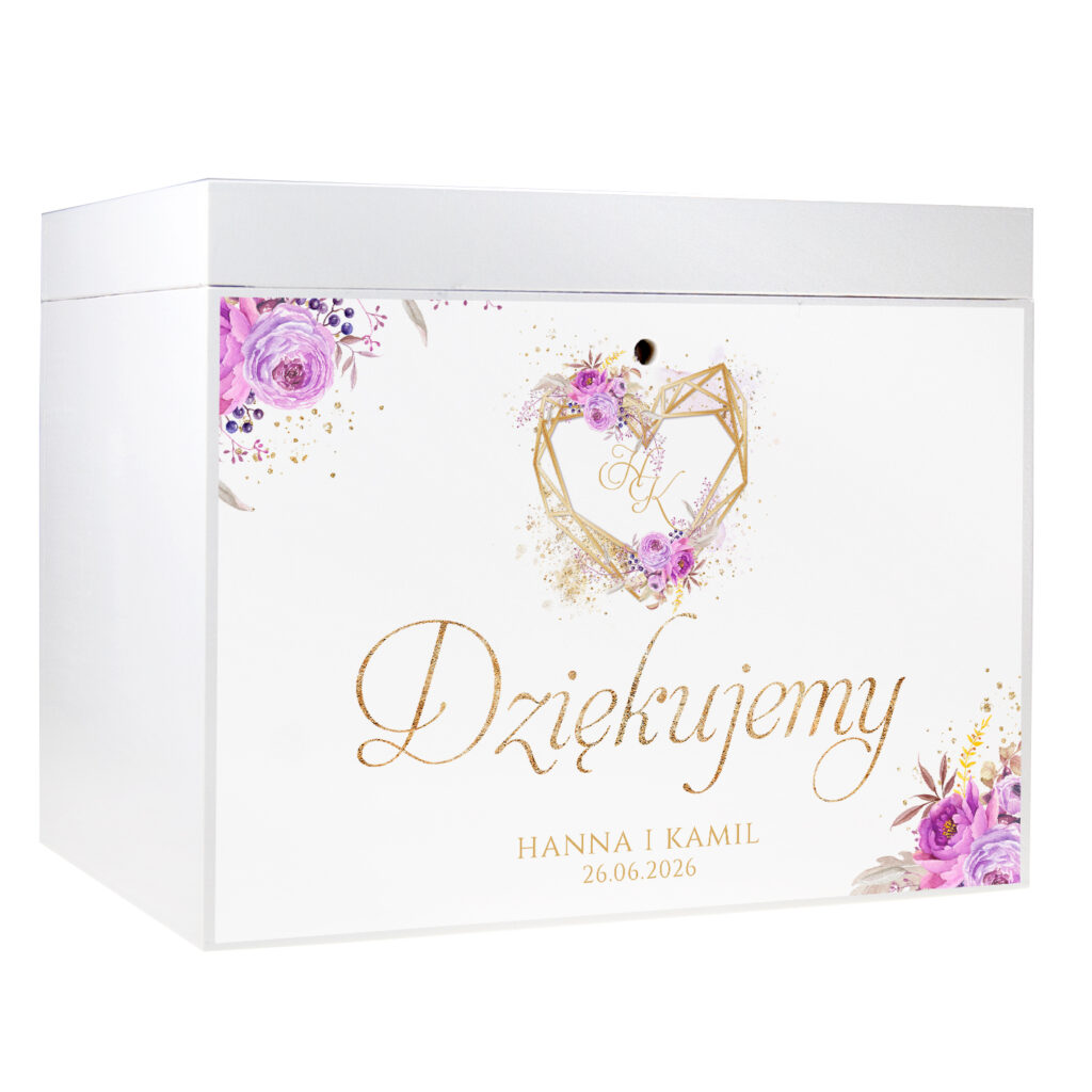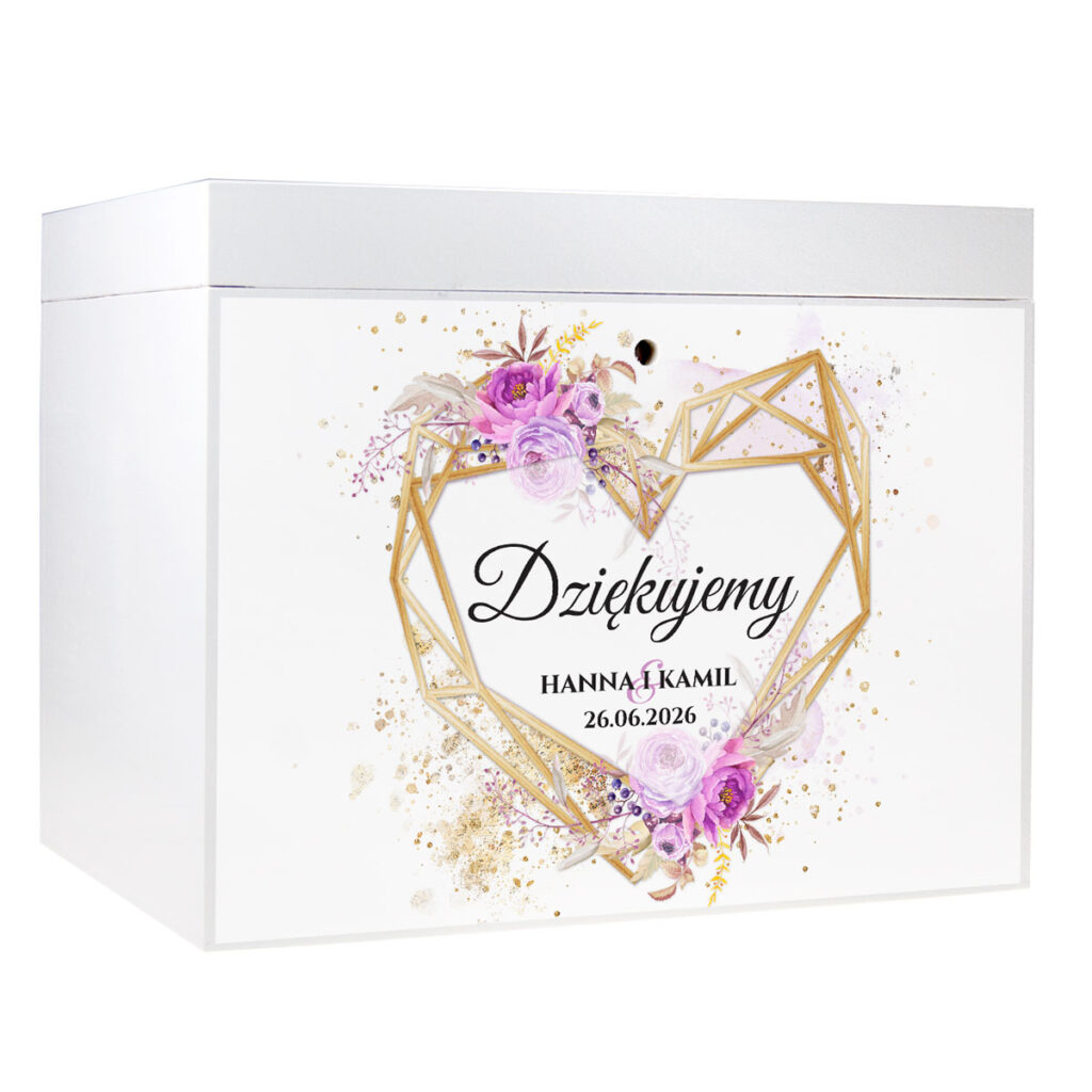 Tradycją jest, że podczas składania życzeń Parze Młodej wręcza się wyjątkowe kartki z życzeniami oraz prezenty, które najczęściej mieszczą się do koperty. Jeżeli w tym wyjątkowym dniu chcesz aby przechowywanie tylu kopert było wygodne to odpowiedź jest tylko jedna: zaopatrz się w naszą skrzynkę na koperty. Pudełko na koperty to bardzo praktyczny i estetyczny dodatek ślubny, który także po ślubie będzie mieć zastosowanie, np. jako pudełko do przechowywania pamiątek ślubnych.