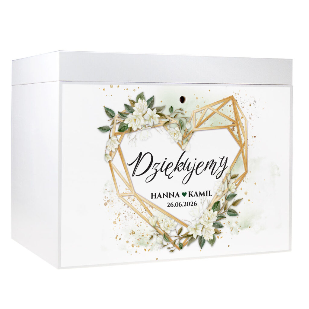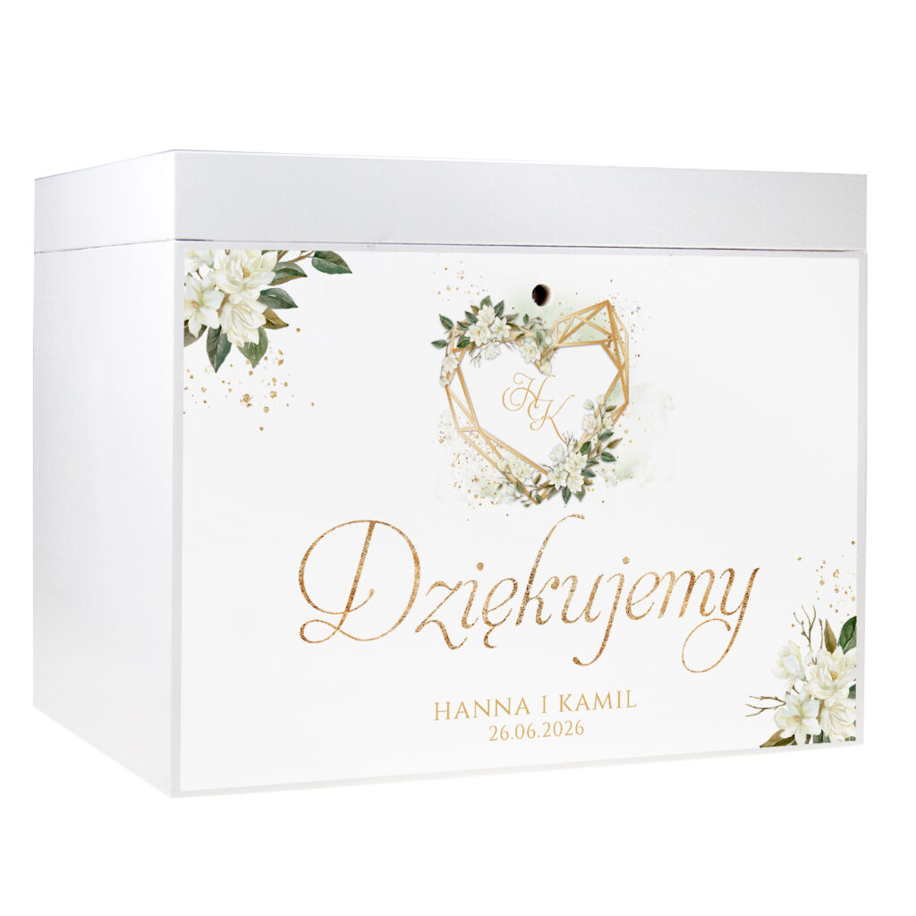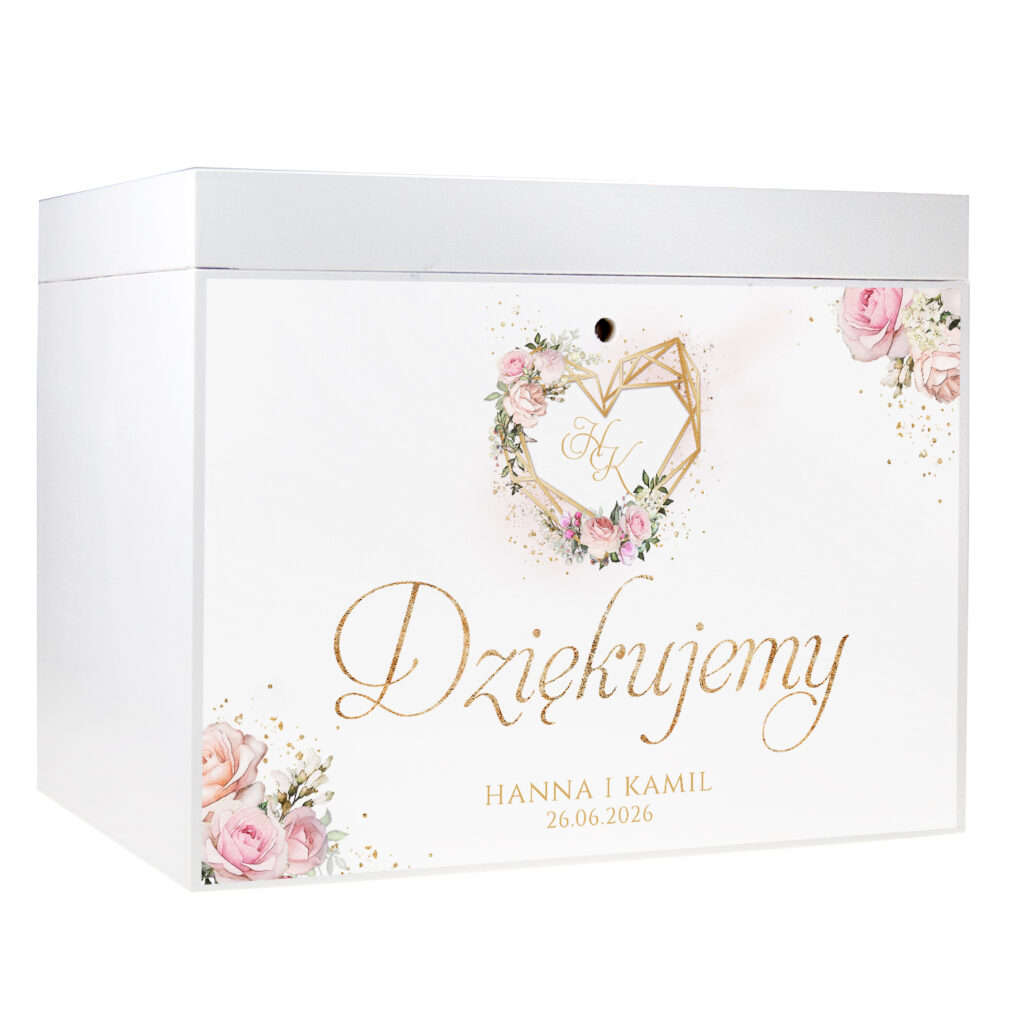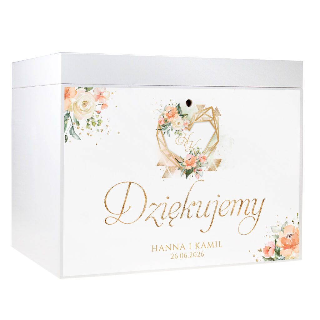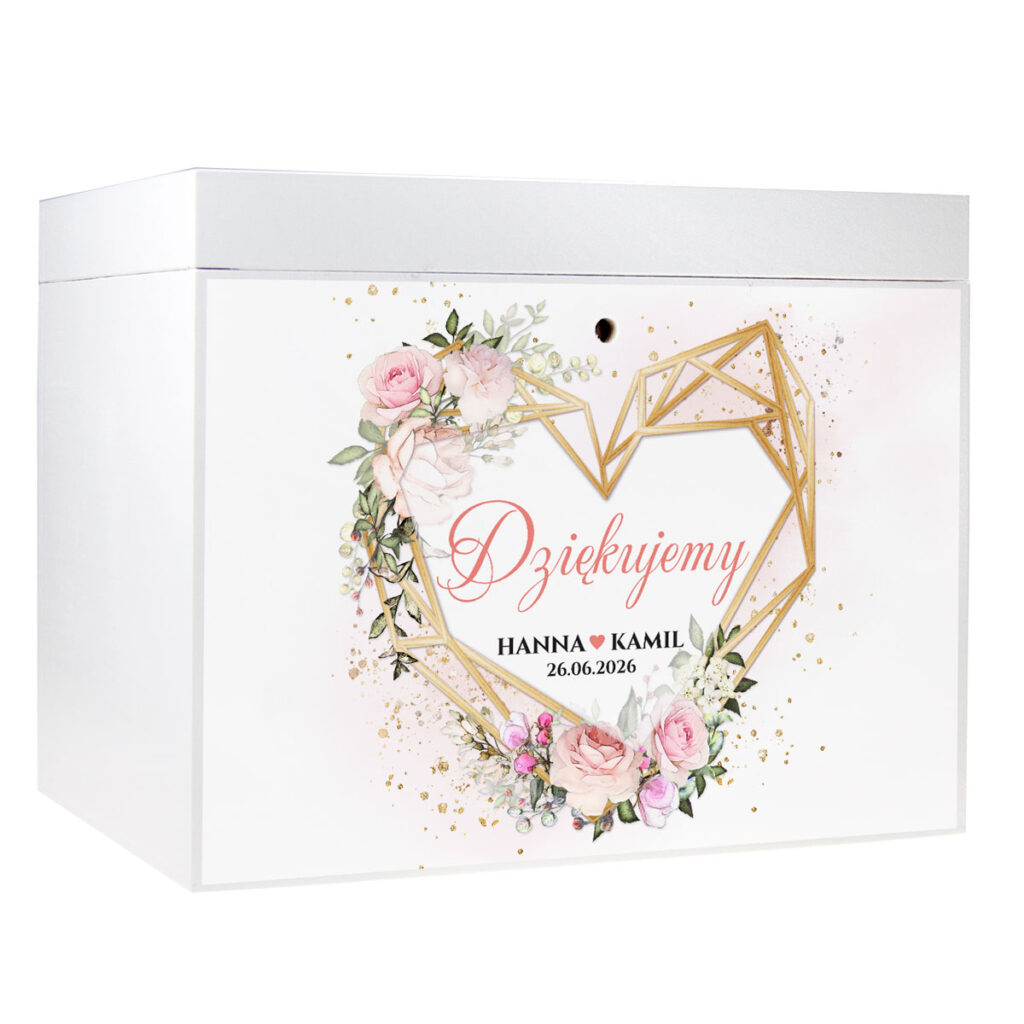 Tradycją jest, że podczas składania życzeń Parze Młodej wręcza się wyjątkowe kartki z życzeniami oraz prezenty, które najczęściej mieszczą się do koperty. Jeżeli w tym wyjątkowym dniu chcesz aby przechowywanie tylu kopert było wygodne to odpowiedź jest tylko jedna: zaopatrz się w naszą skrzynkę na koperty. Pudełko na koperty to bardzo praktyczny i estetyczny dodatek ślubny, który także po ślubie będzie mieć zastosowanie, np. jako pudełko do przechowywania pamiątek ślubnych.