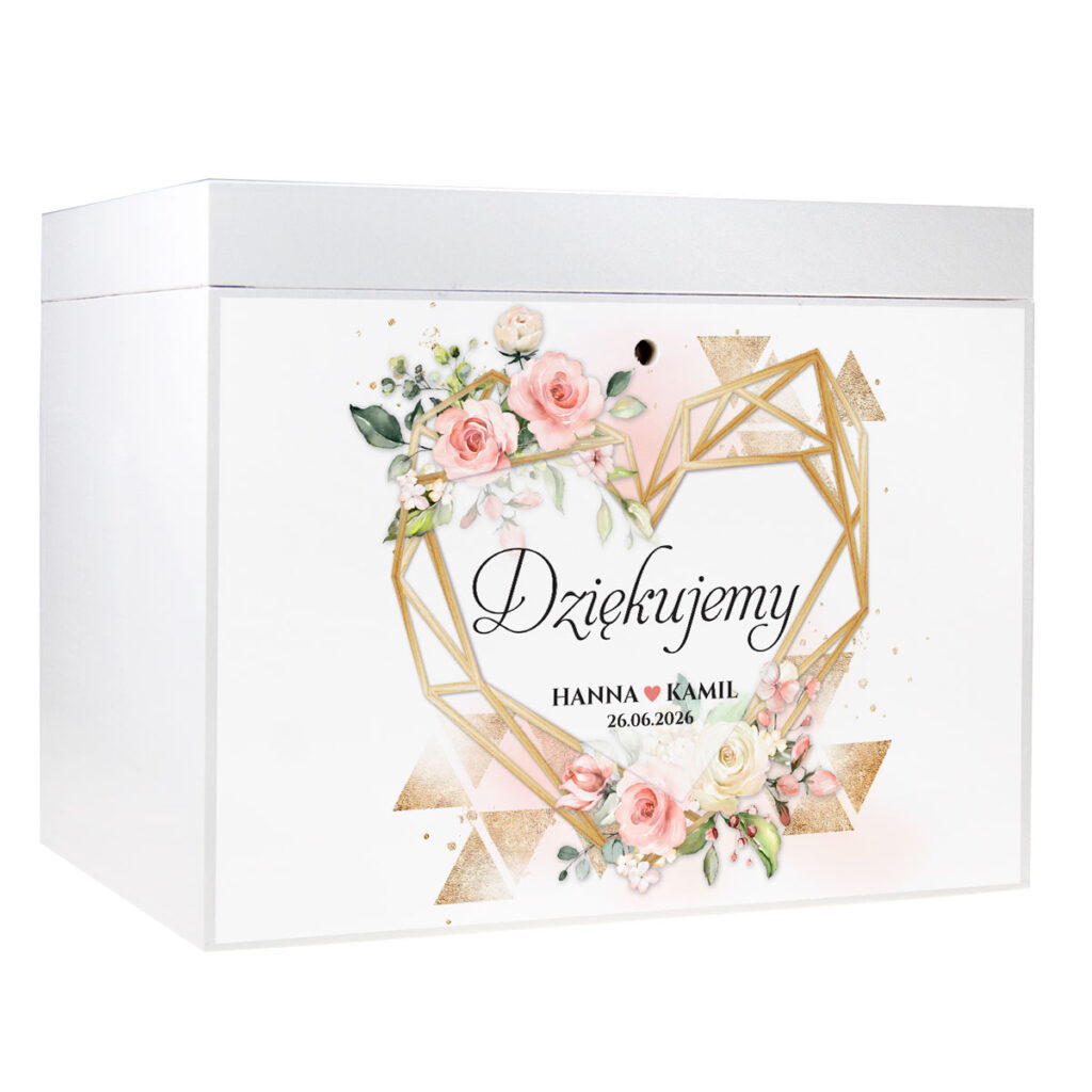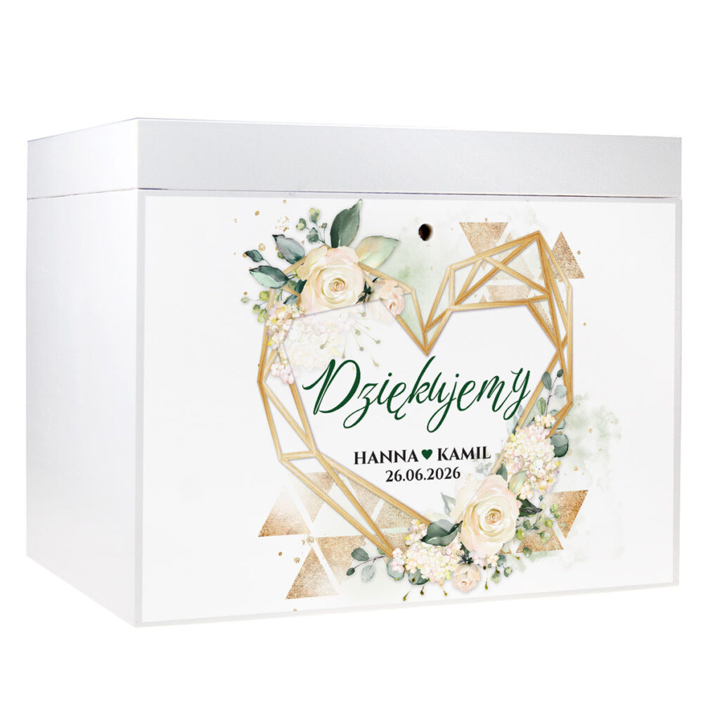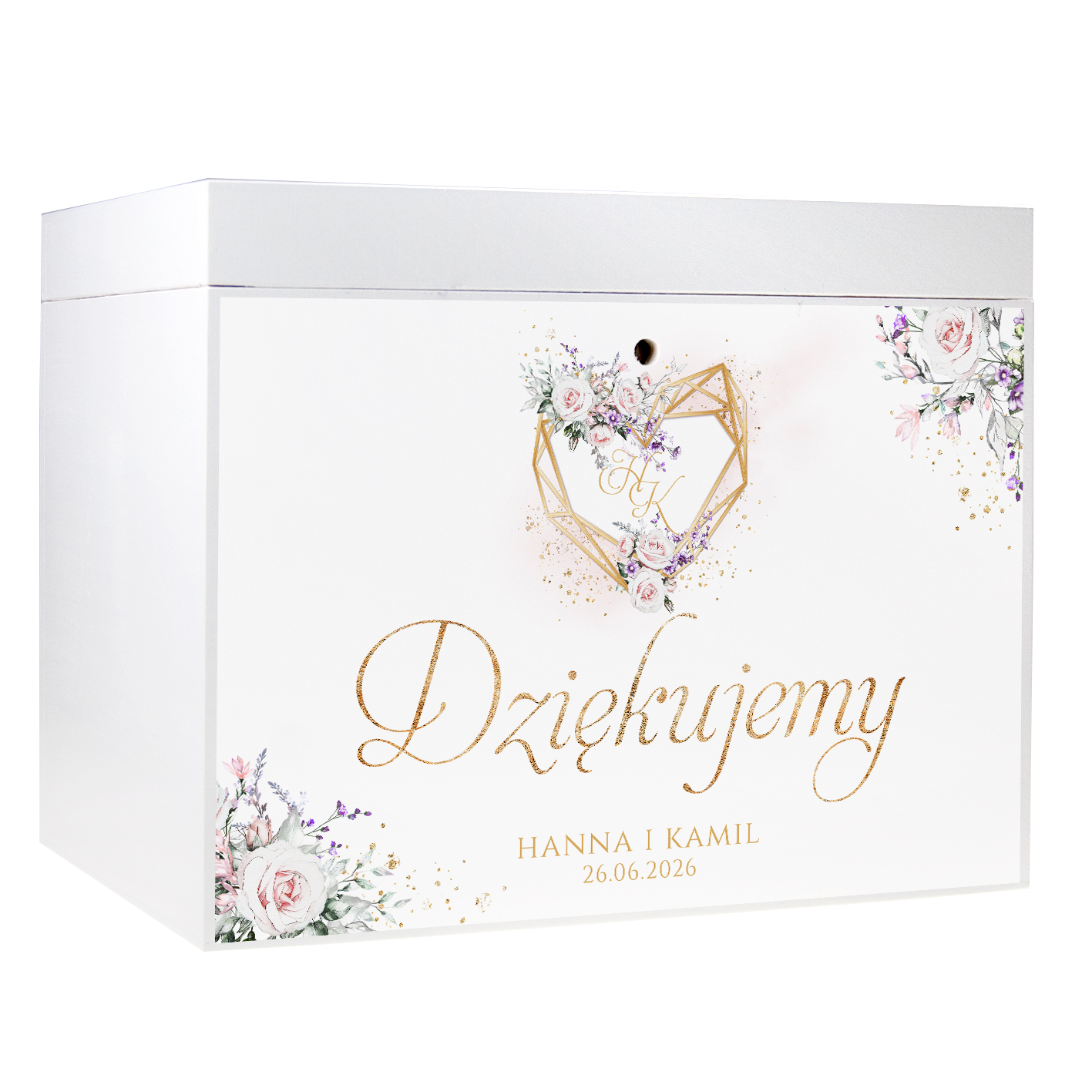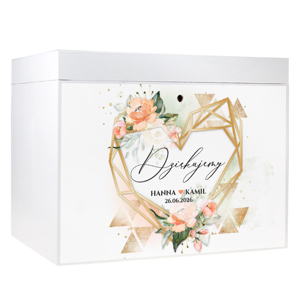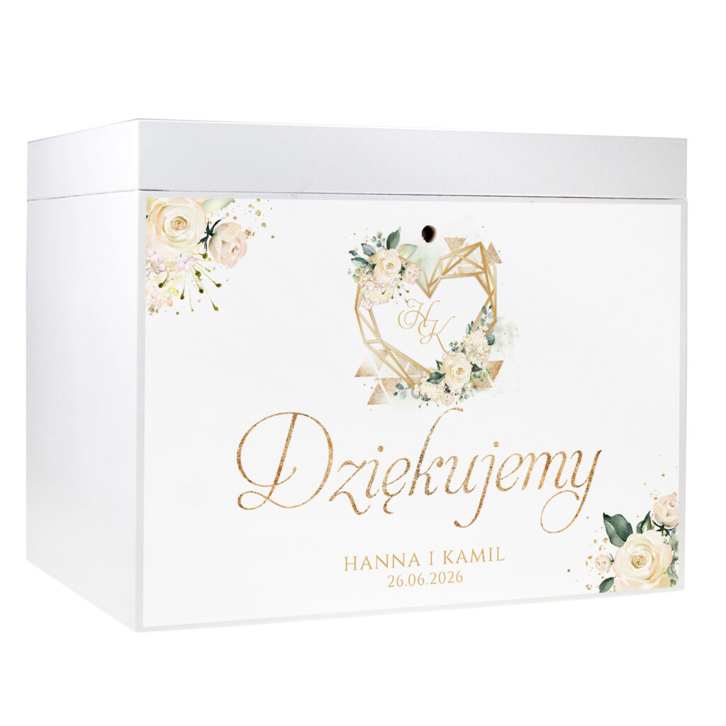 Tradycją jest, że podczas składania życzeń Parze Młodej wręcza się wyjątkowe kartki z życzeniami oraz prezenty, które najczęściej mieszczą się do koperty. Jeżeli w tym wyjątkowym dniu chcesz aby przechowywanie tylu kopert było wygodne to odpowiedź jest tylko jedna: zaopatrz się w naszą skrzynkę na koperty. Pudełko na koperty to bardzo praktyczny i estetyczny dodatek ślubny, który także po ślubie będzie mieć zastosowanie, np. jako pudełko do przechowywania pamiątek ślubnych.