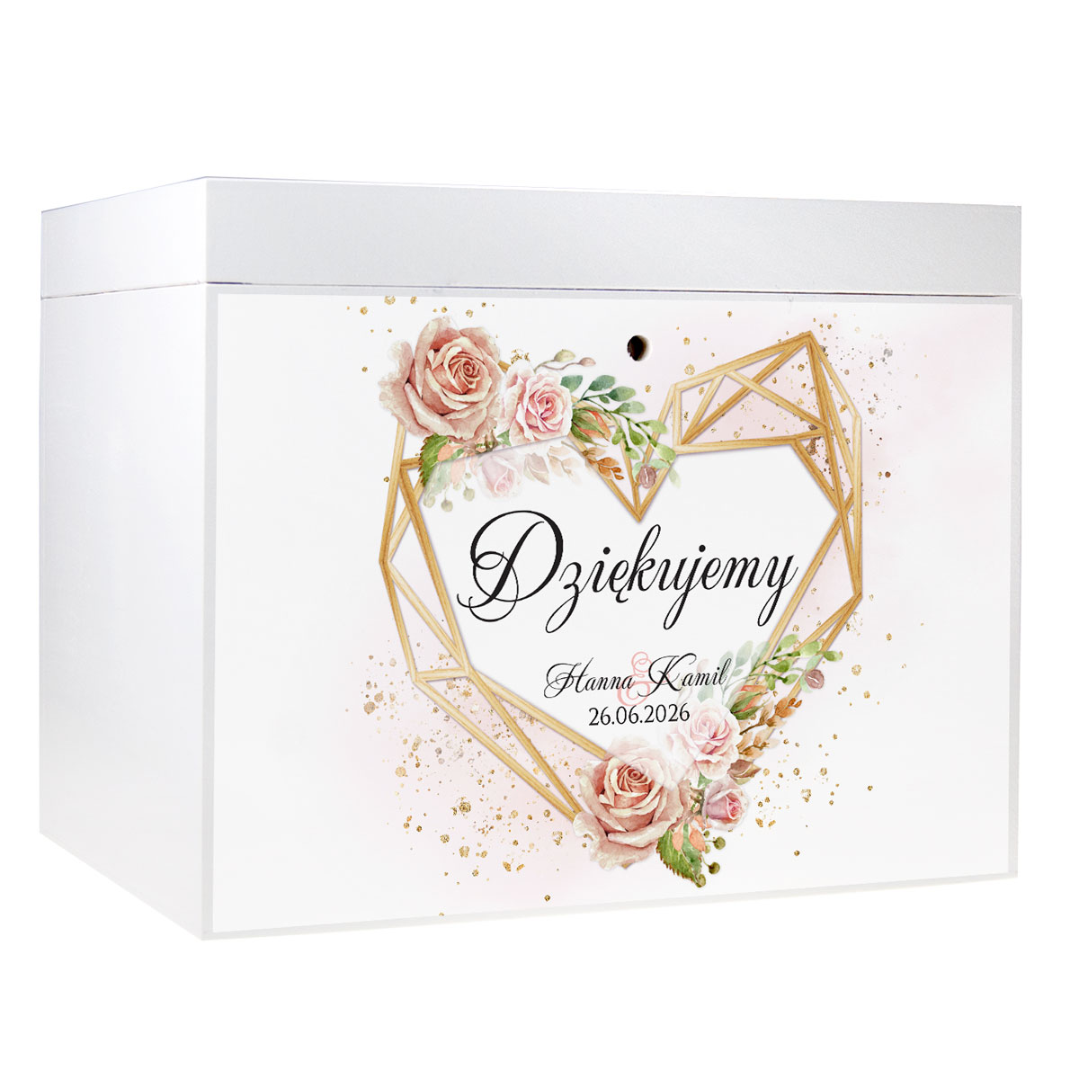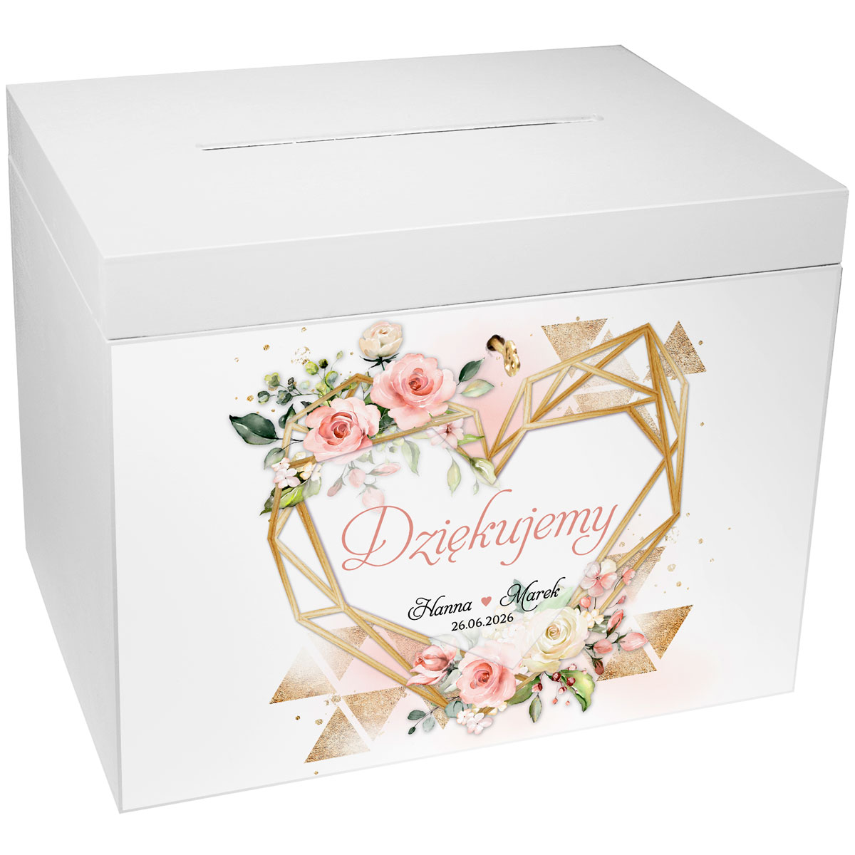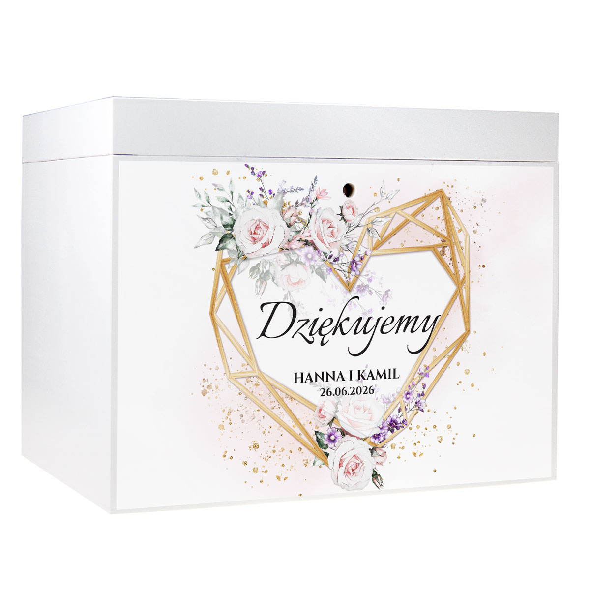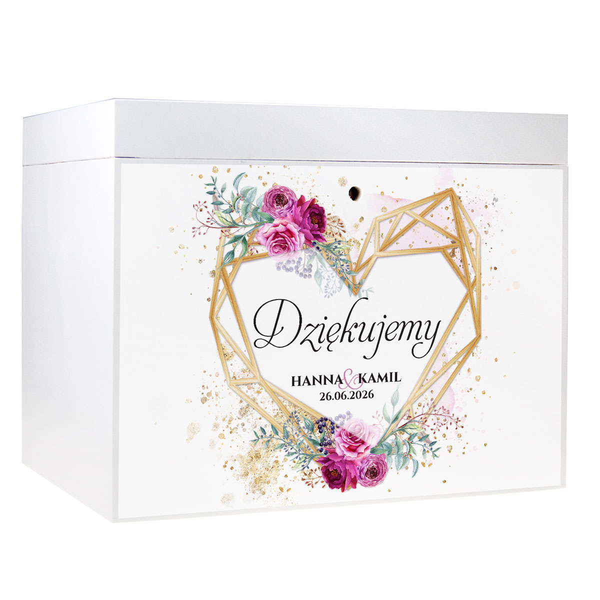 Tradycją jest, że podczas składania życzeń Parze Młodej wręcza się wyjątkowe kartki z życzeniami oraz prezenty, które najczęściej mieszczą się do koperty. Jeżeli w tym wyjątkowym dniu chcesz aby przechowywanie tylu kopert było wygodne to odpowiedź jest tylko jedna: zaopatrz się w naszą skrzynkę na koperty. Pudełko na koperty to bardzo praktyczny i estetyczny dodatek ślubny, który także po ślubie będzie mieć zastosowanie, np. jako pudełko do przechowywania pamiątek ślubnych.