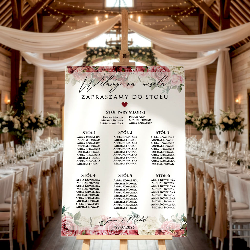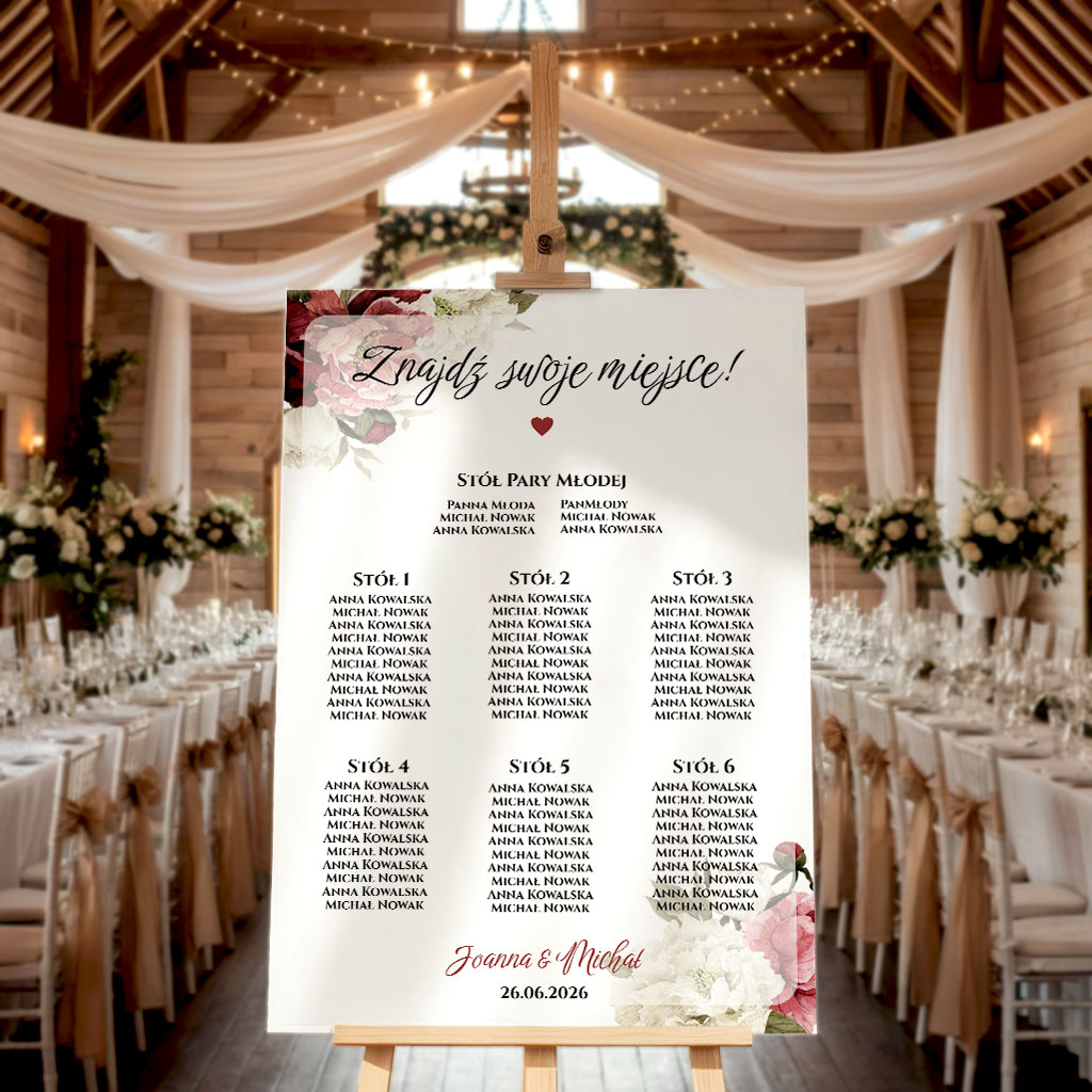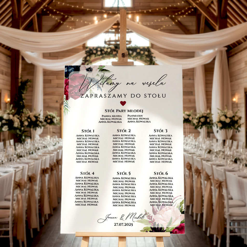 Tablica z usadzeniem gości to nie tylko praktyczne narzędzie. Jest ona ważnym elementem organizacyjnym, który wpływa na atmosferę wesela, pomaga w jego płynnym przebiegu i dodaje całemu wydarzeniu osobistego uroku. Treść na tablicy jest całkowicie dowolna.