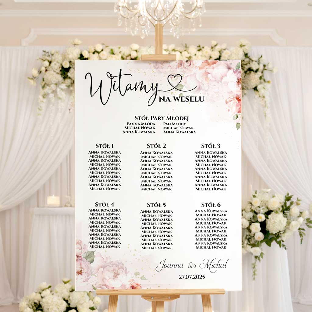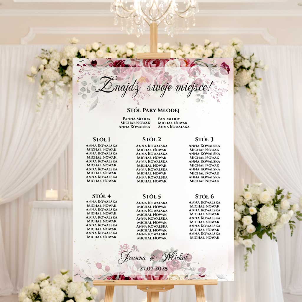 Tablica z usadzeniem gości to nie tylko praktyczne narzędzie. Jest ona ważnym elementem organizacyjnym, który wpływa na atmosferę wesela, pomaga w jego płynnym przebiegu i dodaje całemu wydarzeniu osobistego uroku. Treść na tablicy jest całkowicie dowolna.