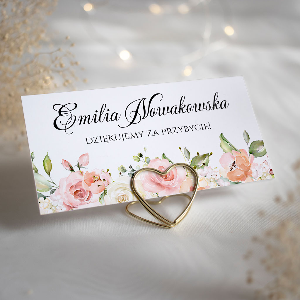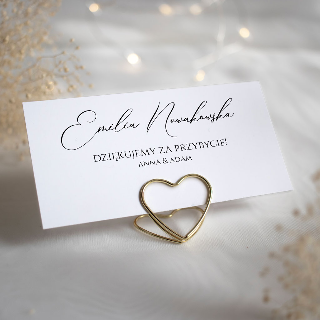 Wymiary winietki – ok. 10 cm x 5 cm | W zestawie stojak złote serduszko – wysokość ok. 2,5 cm