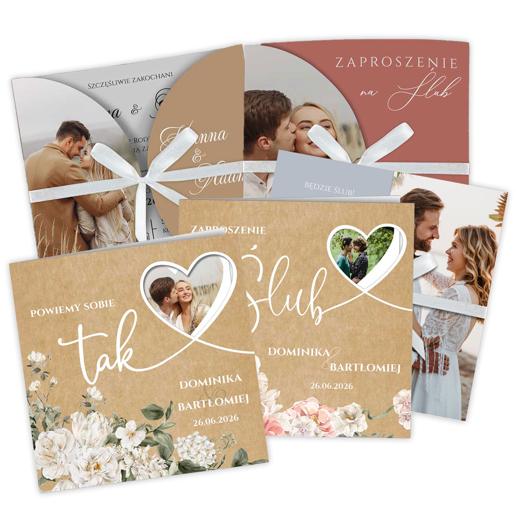 Wyjątkowa kolekcja zaproszeń składanych typu brama ze zdjęciem. Treść na zaproszeniach jest całkowicie dowolna, możesz przygotować projekt na dowolną okazję.
