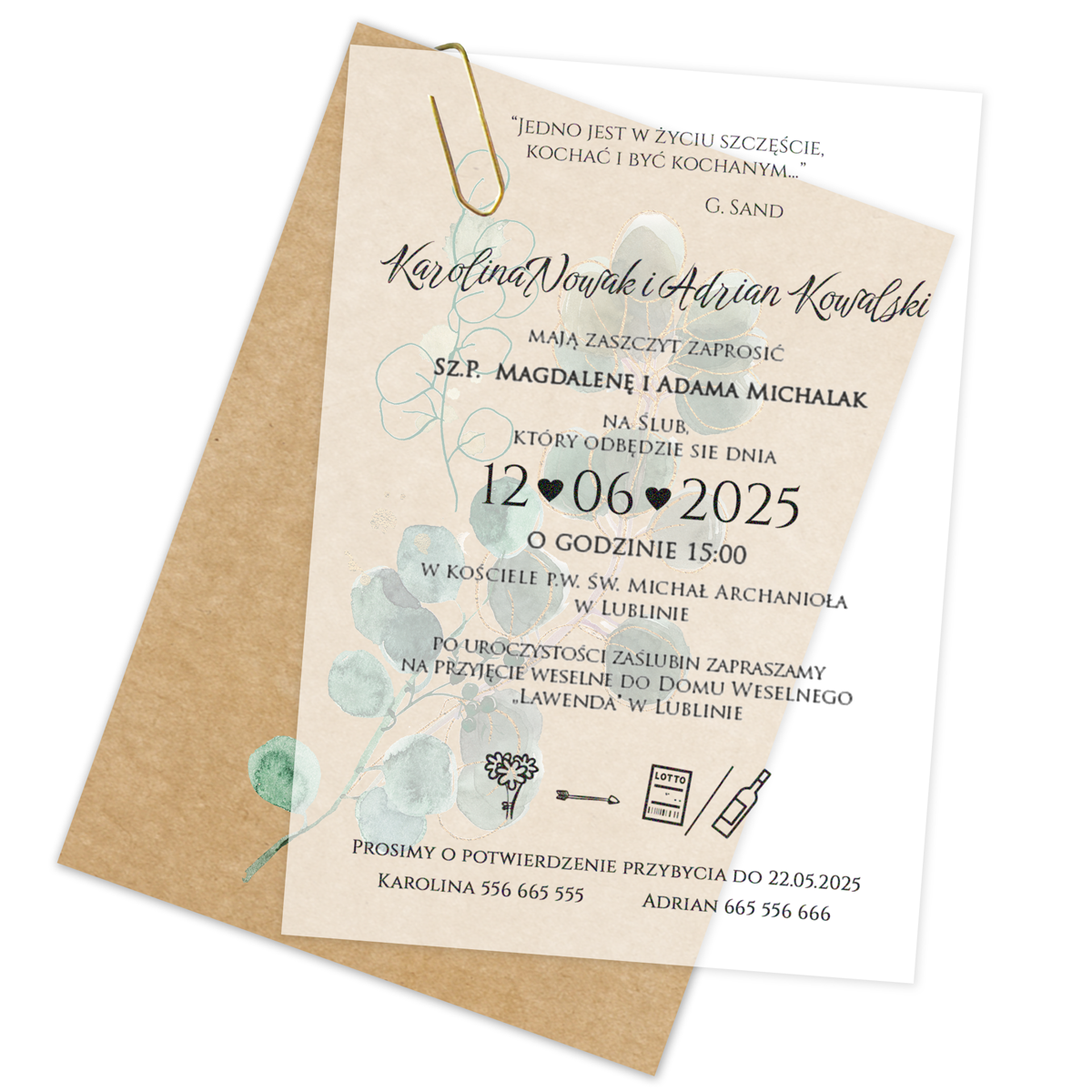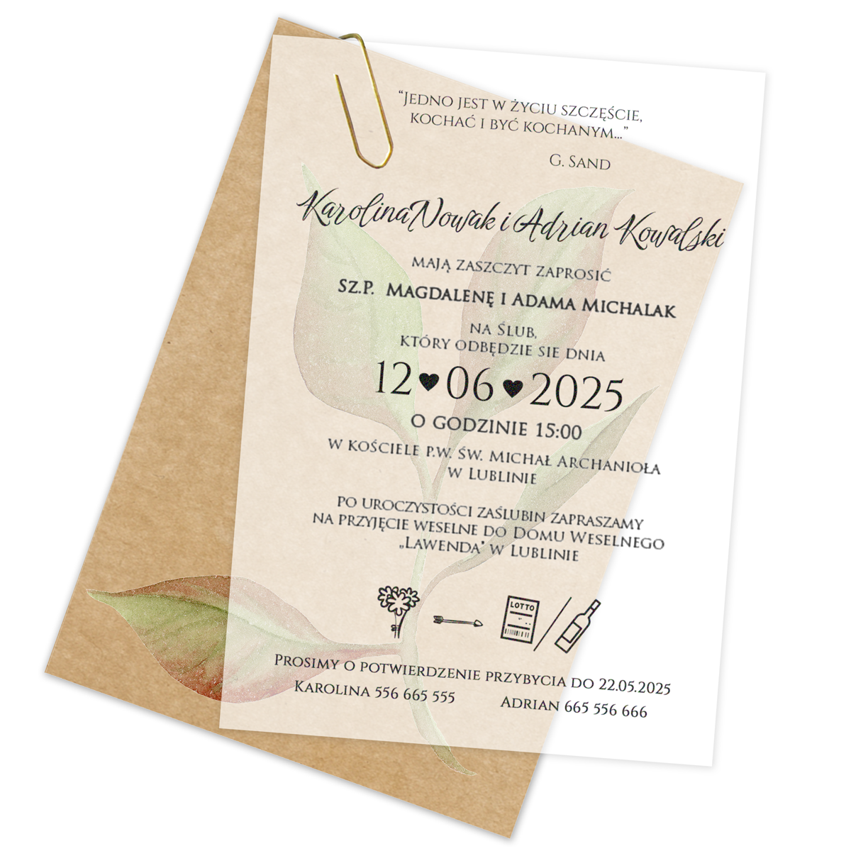 Zaproszenia ślubne EKO A6 z kalką -8 wzorów