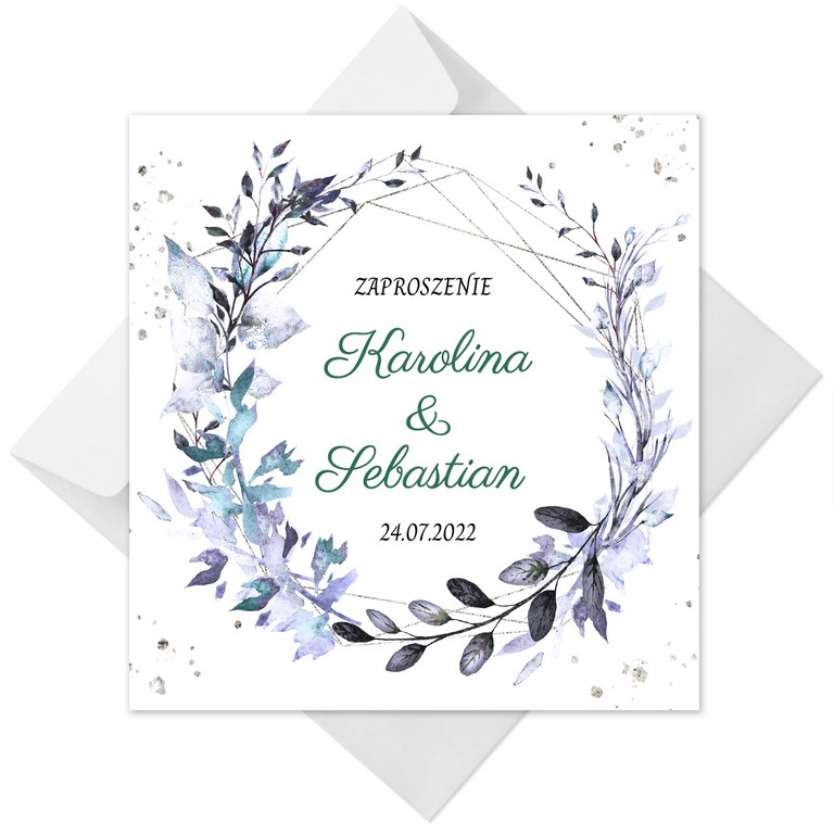 Zaproszenia ślubne idealne dla tych, którzy szukają odrobiny elegancji. Wyraziste kompozycje kwiatowe w odcieniach fioletu i burgundu z geometrycznymi akcentami nadają projektowi wyjątkowy charakter. Treść na zaproszeniach jest całkowicie dowolna, możesz przygotować projekt na dowolną okazję.