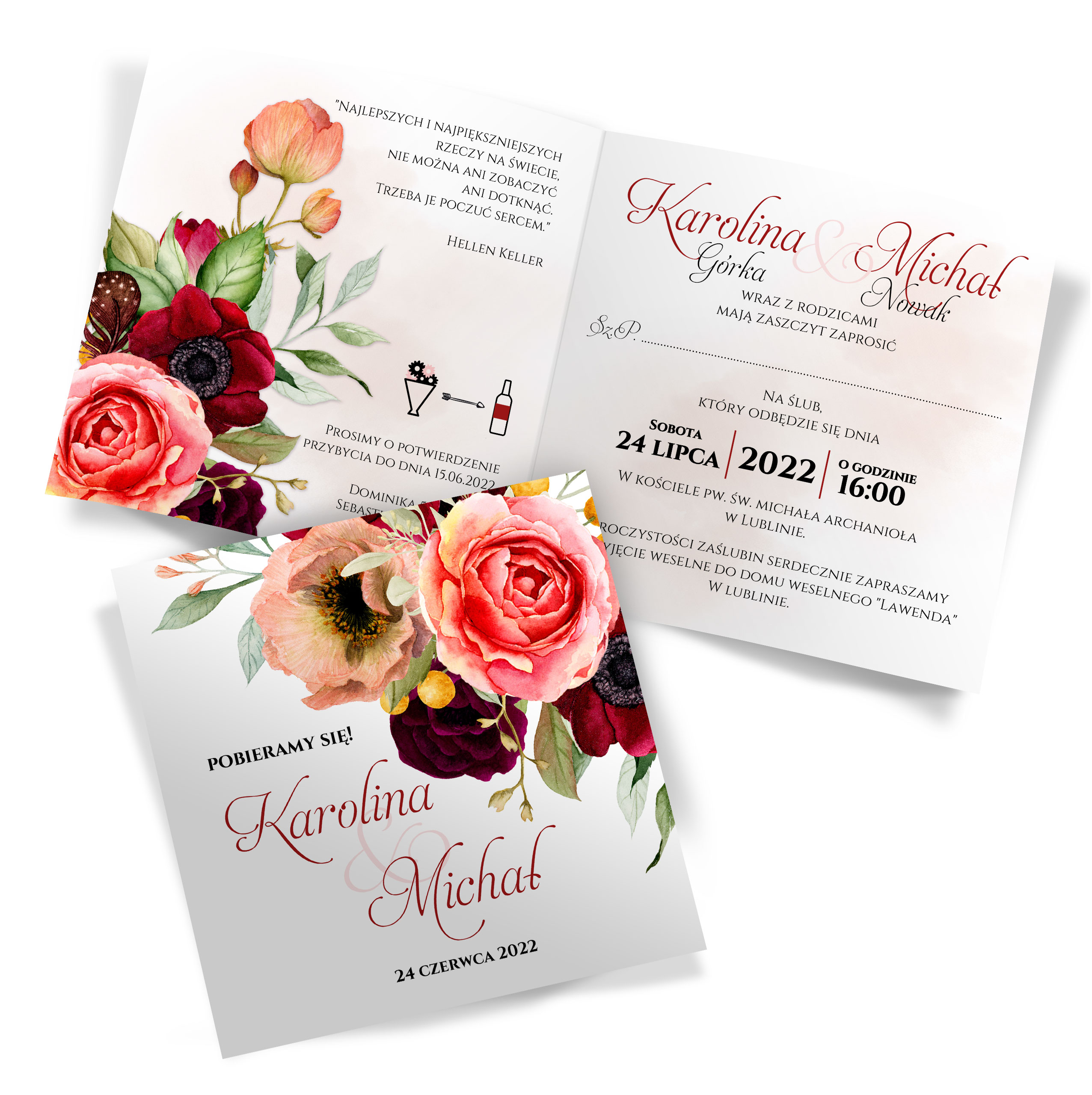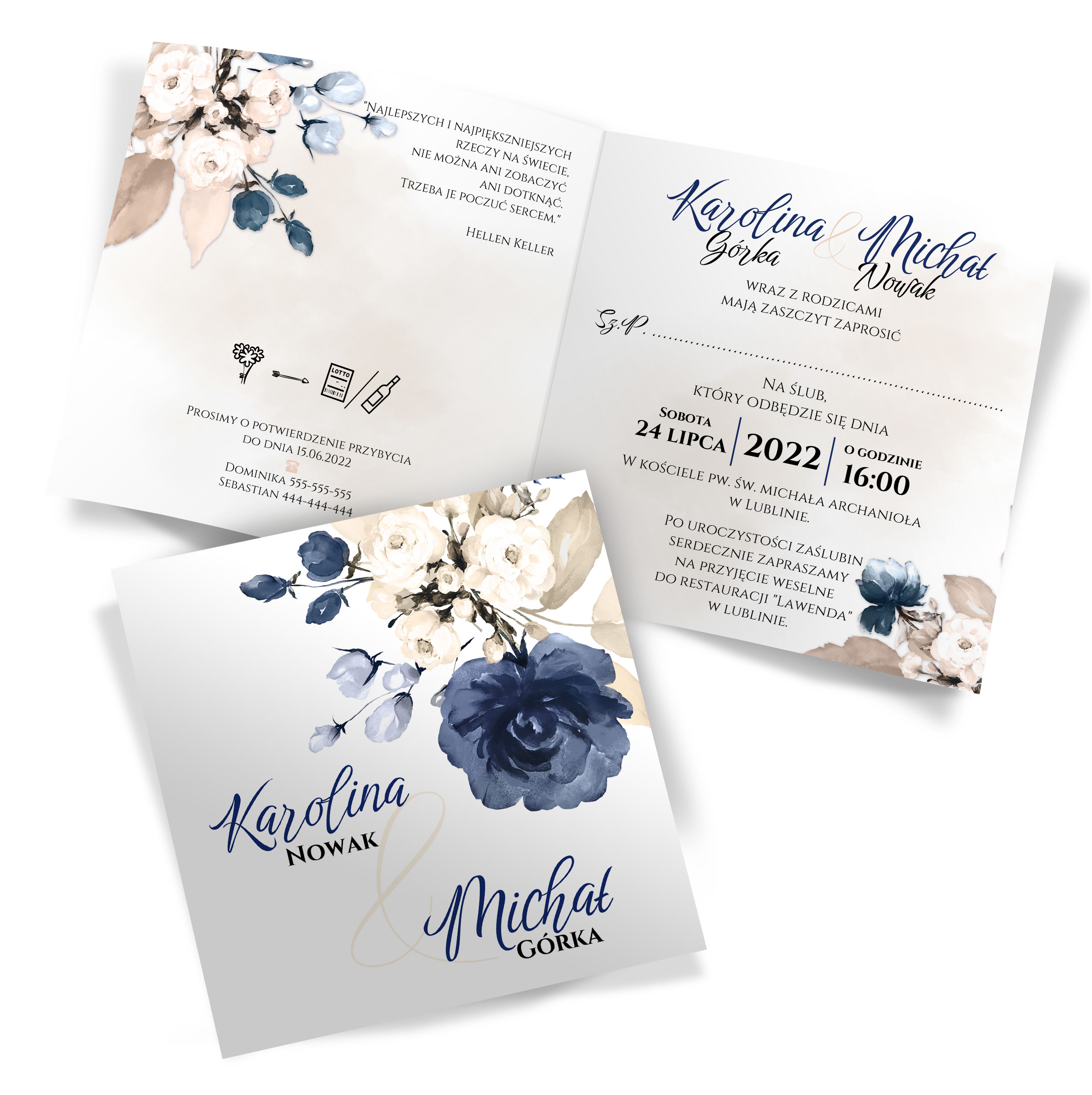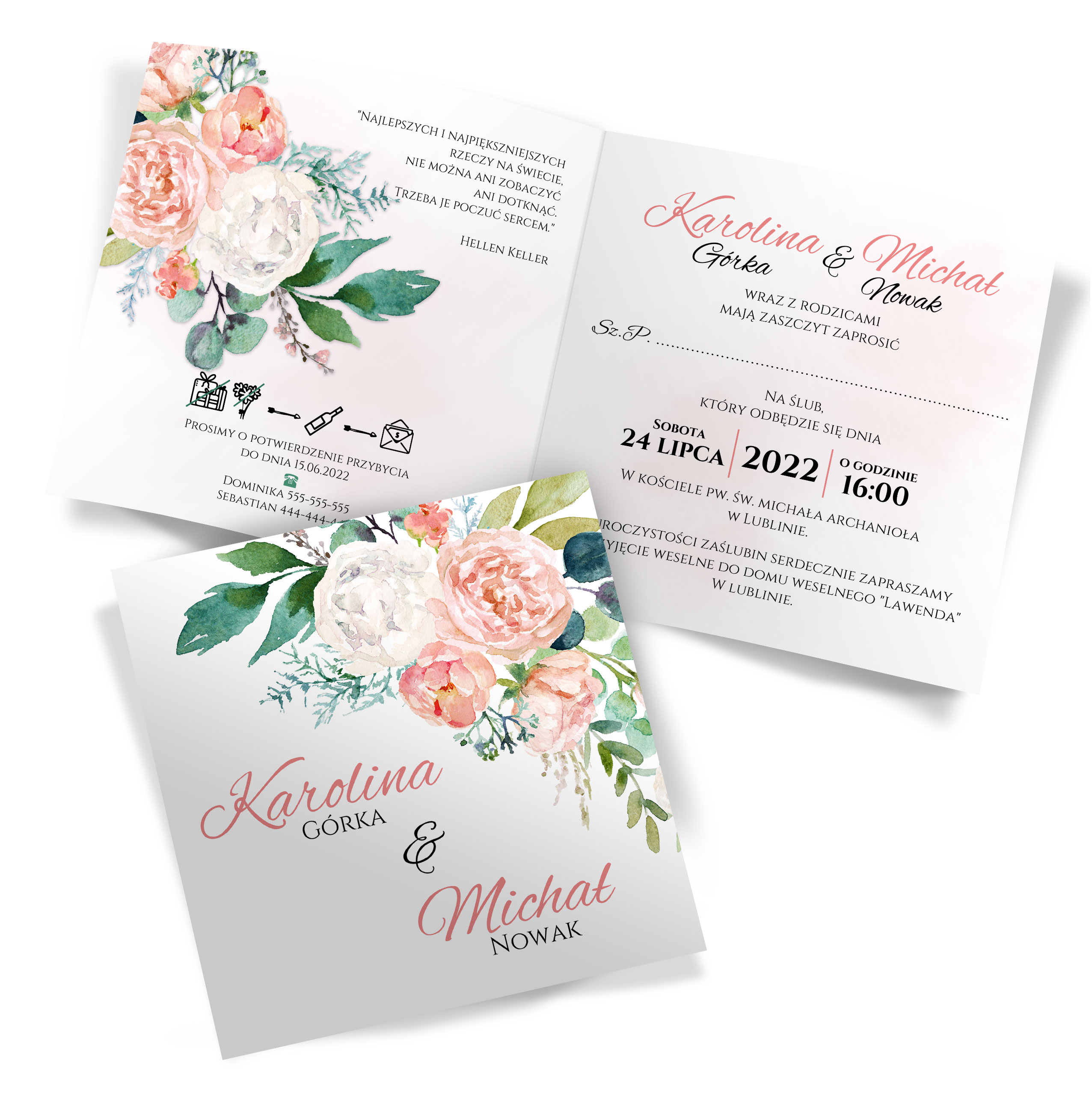 Dzięki szerokiej gamie eleganckich motywów kwiatowych do wyboru, z pewnością znajdziesz idealny projekt pasujący do Twojego wyjątkowego dnia. Twoi goście będą pod wrażeniem dbałości o szczegóły i pięknego designu. Treść na zaproszeniach jest całkowicie dowolna, możesz przygotować projekt na dowolną okazję.