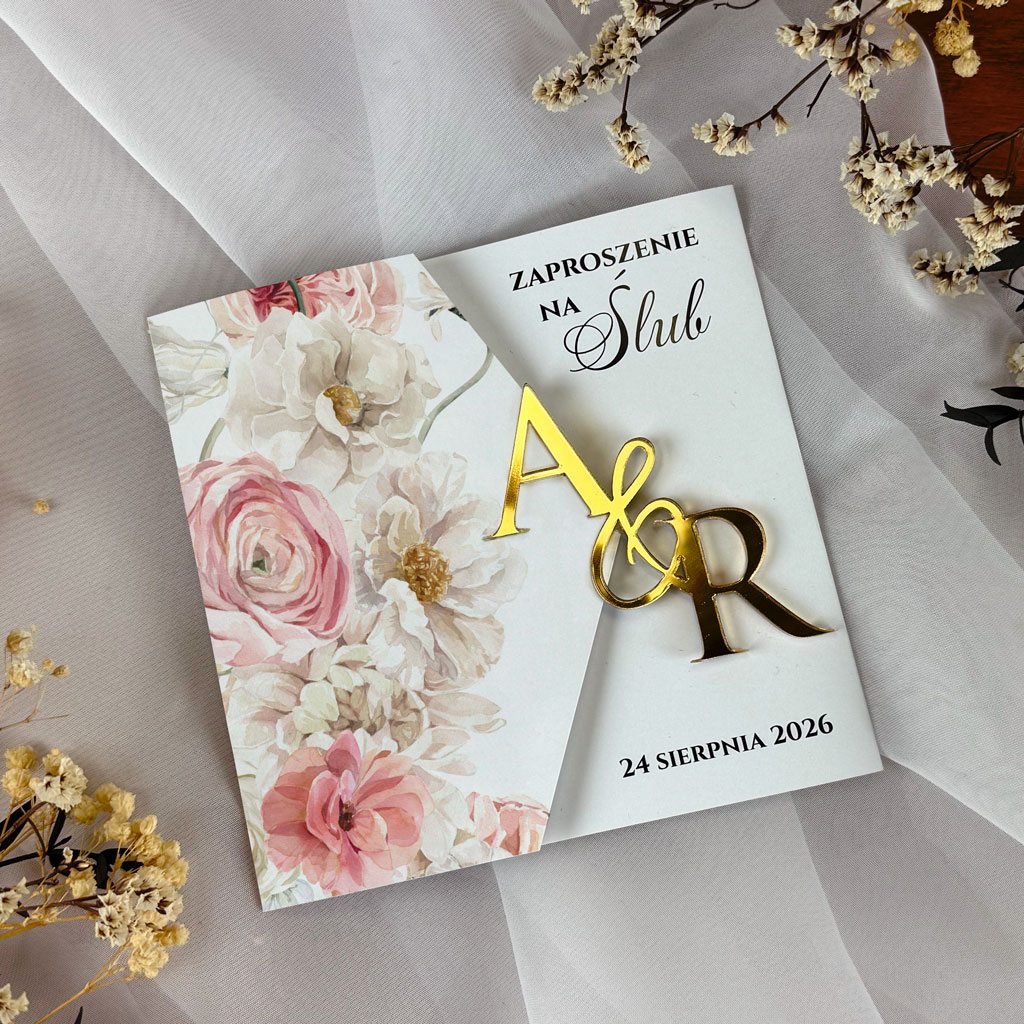 - Zaproszenia do samodzielnego złożenia, do inicjałów dodajemy przylepce