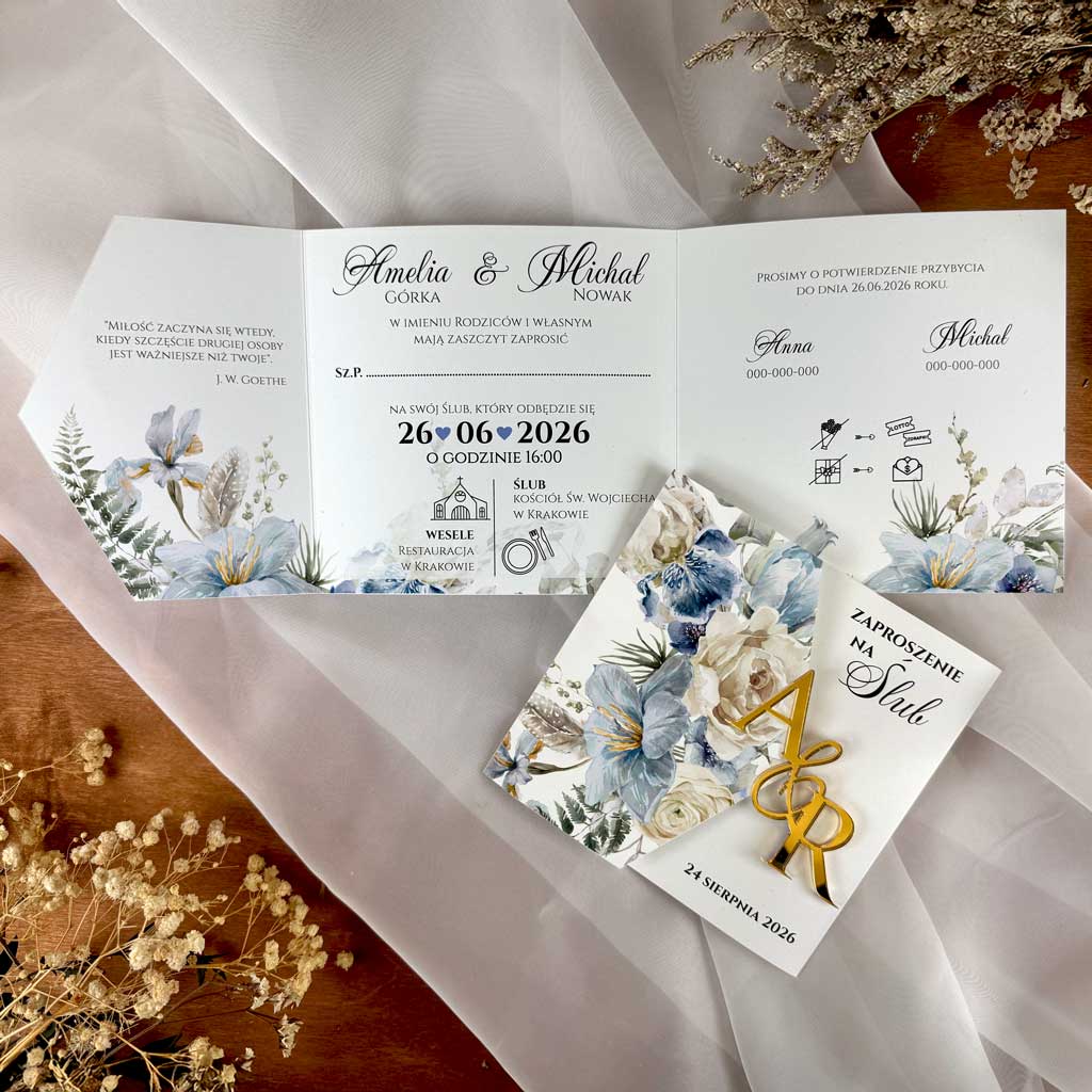 Zaproszenia ślubne składane – Luiza – 7 wzorów