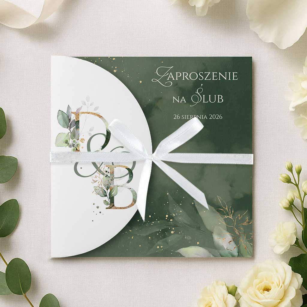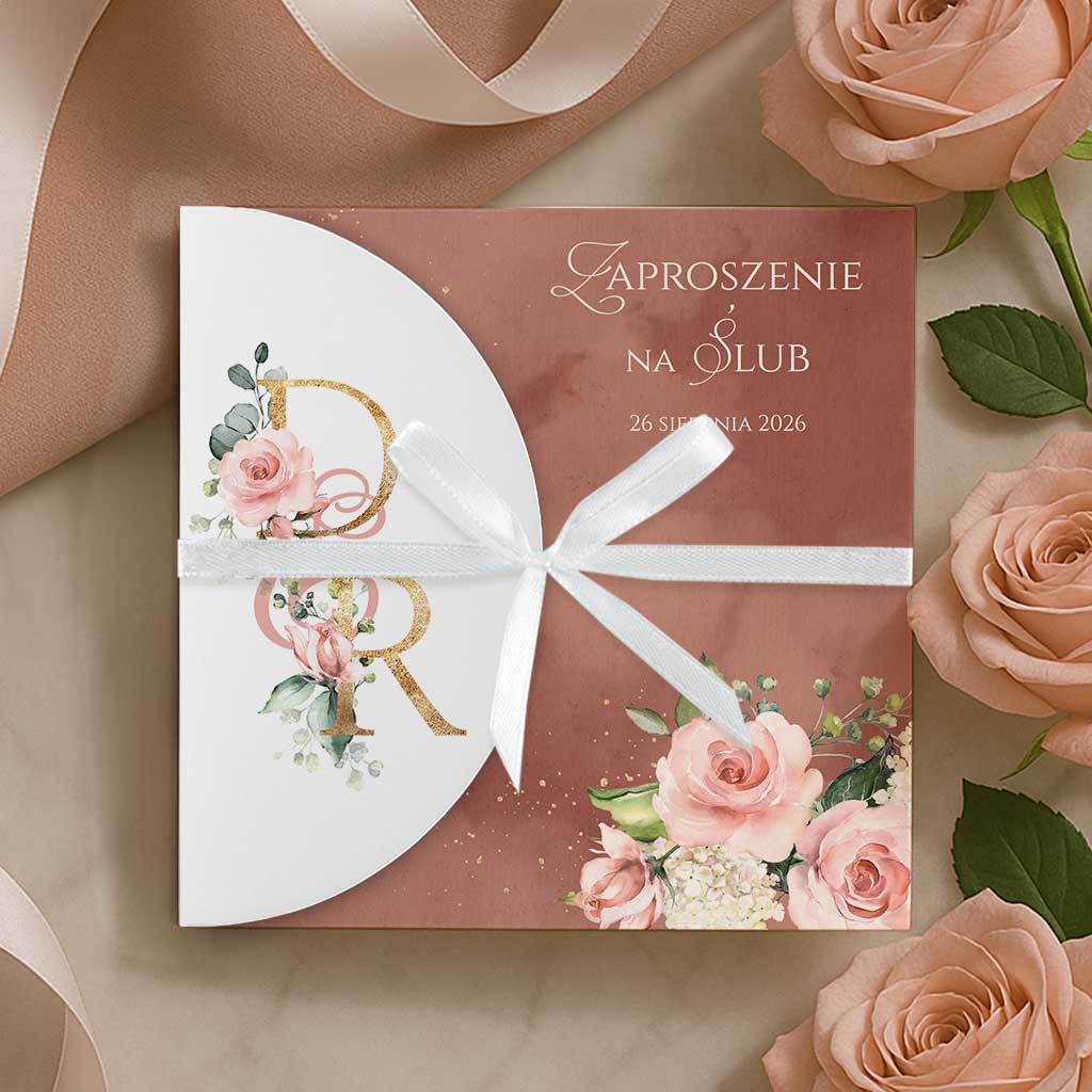 Zaproszenia ślubne składane ze wstążką – Pelagia